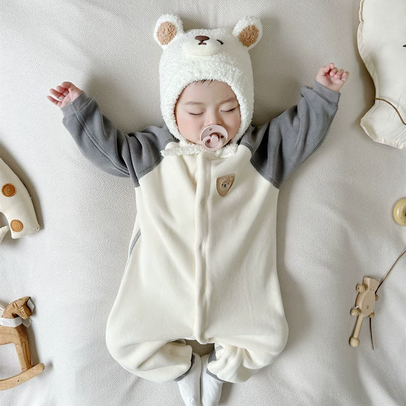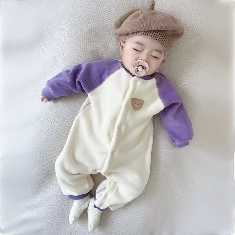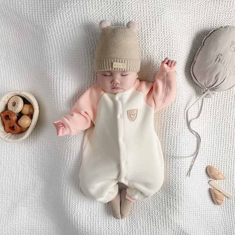 Warm and boneless mid-thick onesie for babies with velvet in autumn and winter