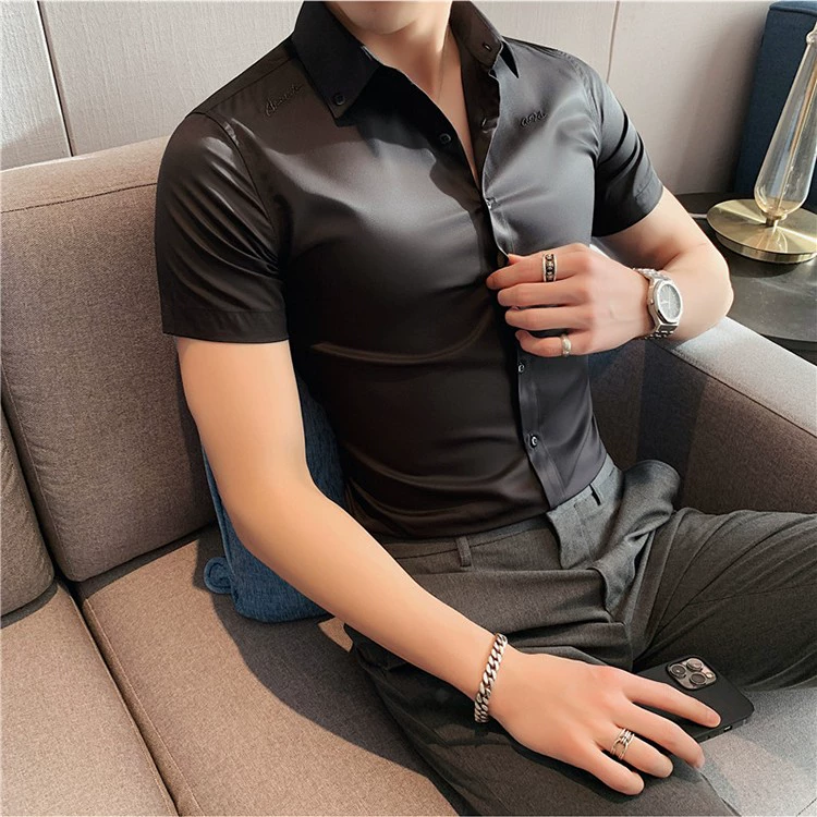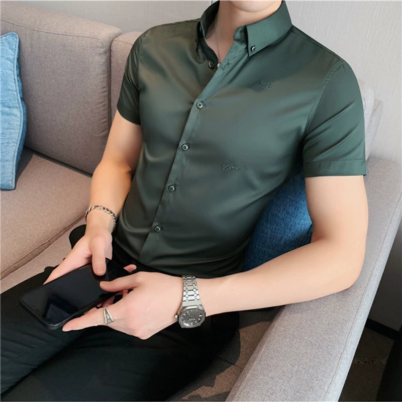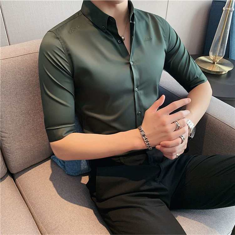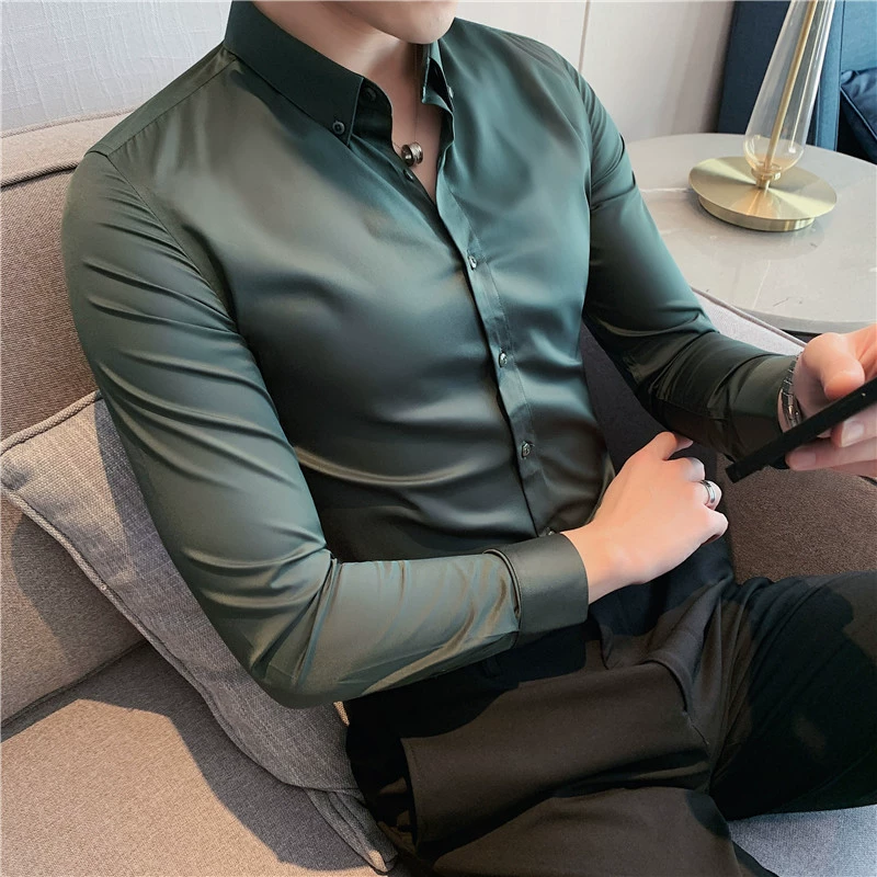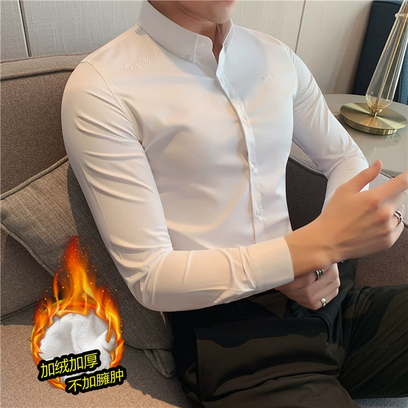 | nameOriginal | Autumn and winter velvet business dark green ice silk long-sleeved shirt |