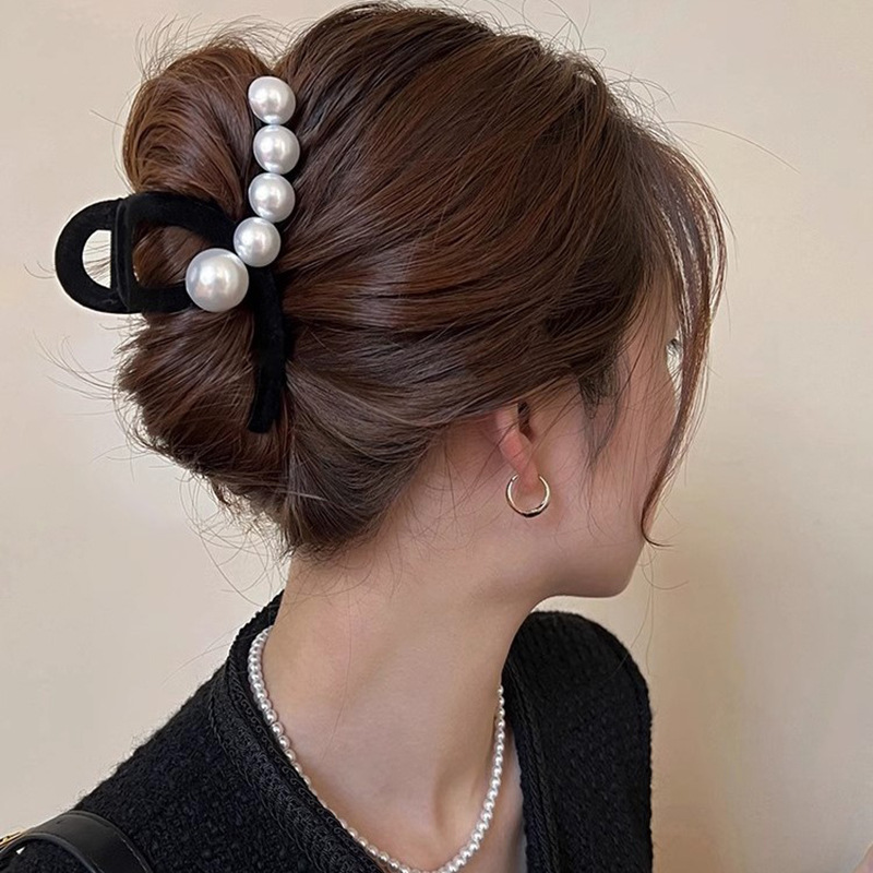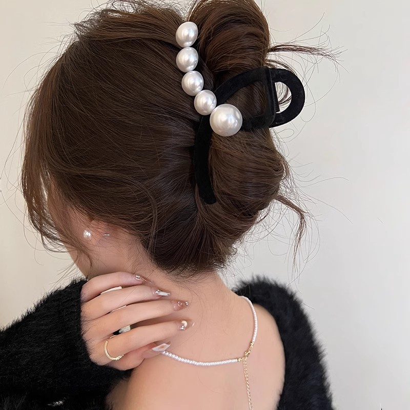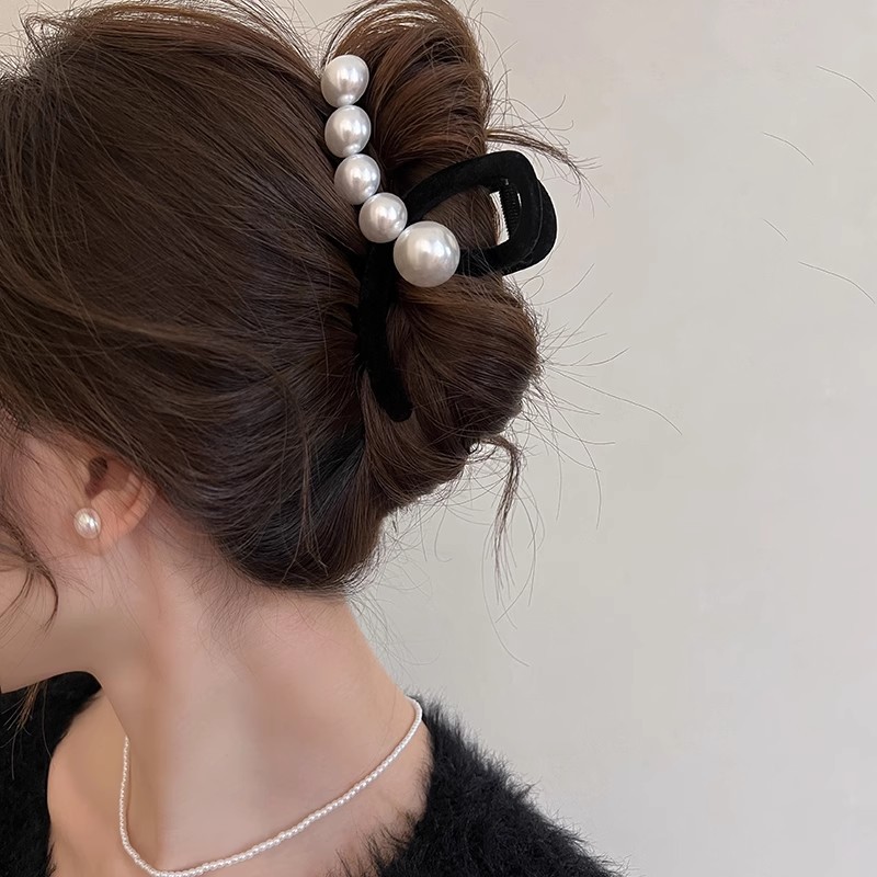 | nameOriginal | Autumn and Winter velvet pearl clip female 2023 new large hairpin back head temperament high-grade shark clip headdress |