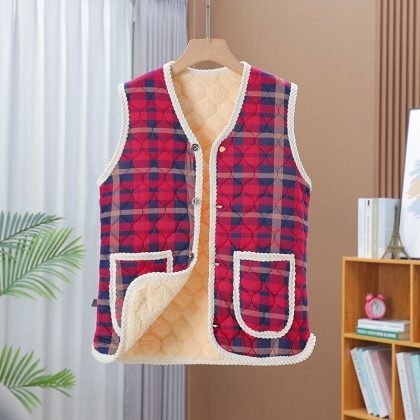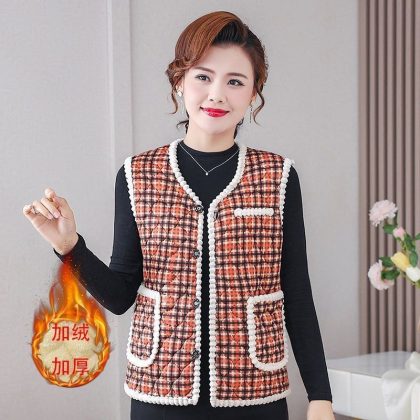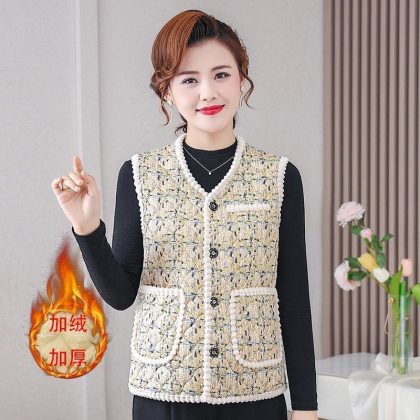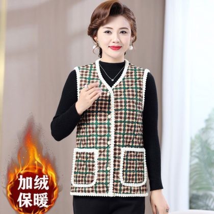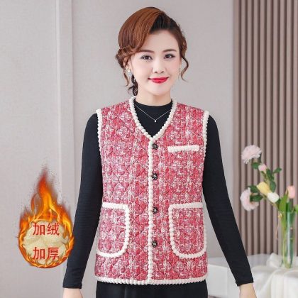 | nameOriginal | Autumn and winter vest women's fleece-lined thickened middle-aged and elderly mothers popular sleeveless warm vest short outer wear cotton-padded coat |