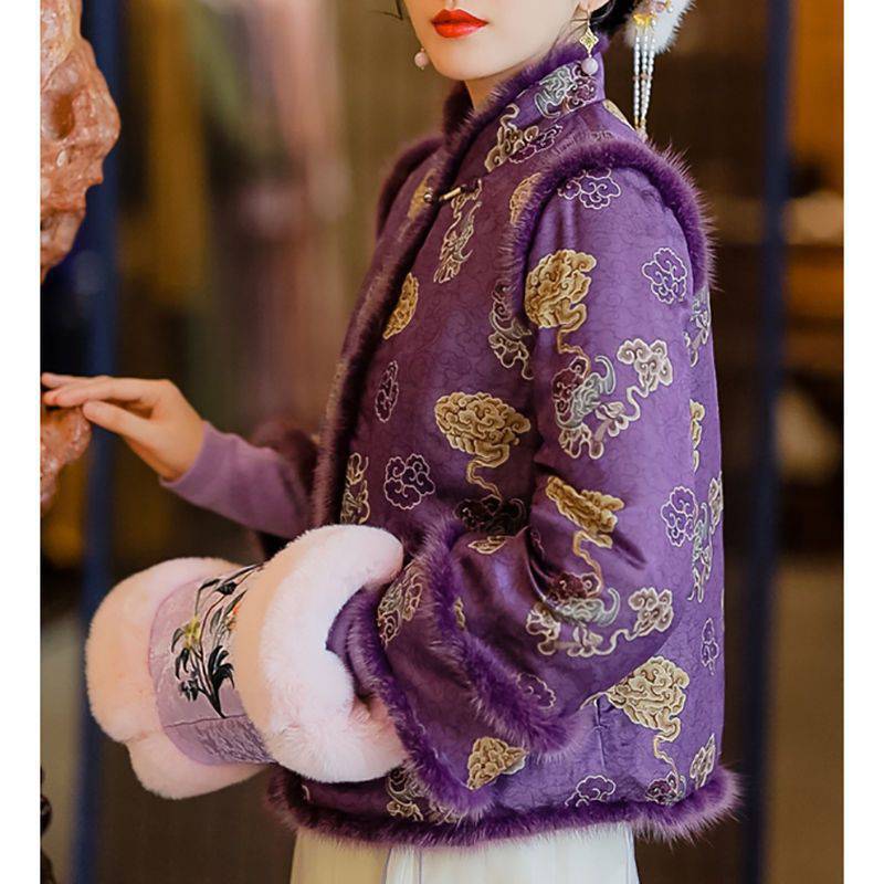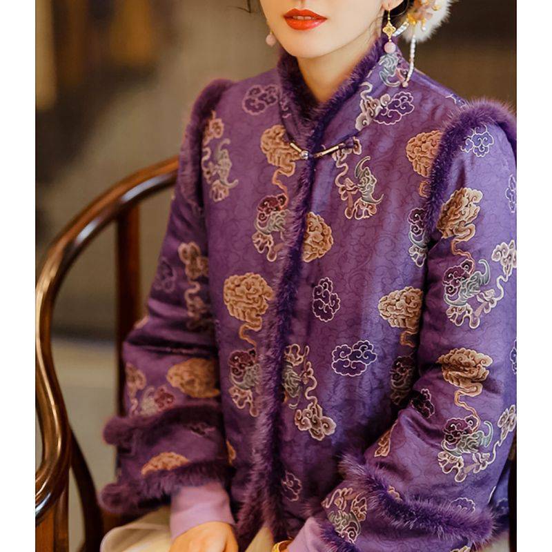 | nameOriginal | Autumn and winter wear ethnic style coat Zen Xiangyun inscription slimming Western style stitching purple short cotton coat |