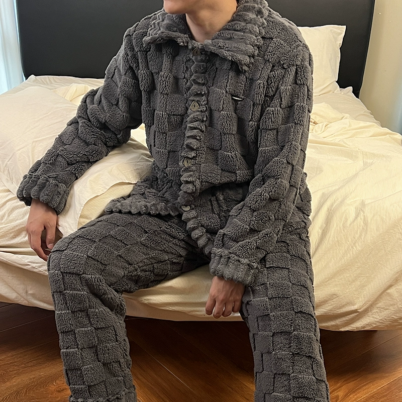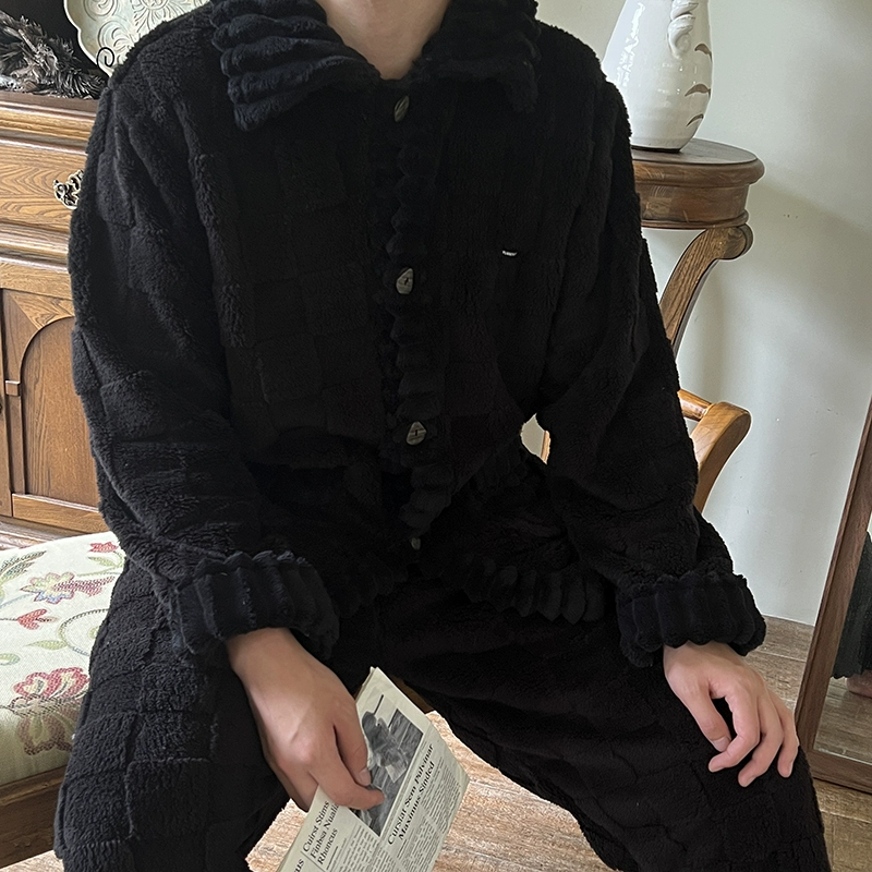 Autumn and winter women's coral velvet couple's warm and thickened pajamas