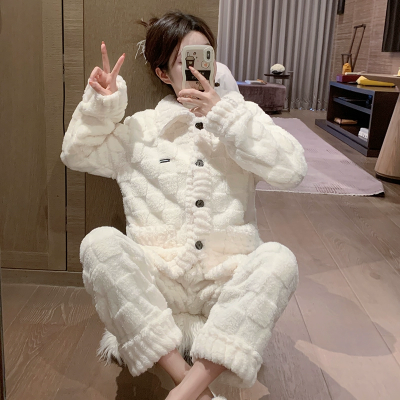 Autumn and winter female coral velvet couples keep warm and thick pajamas