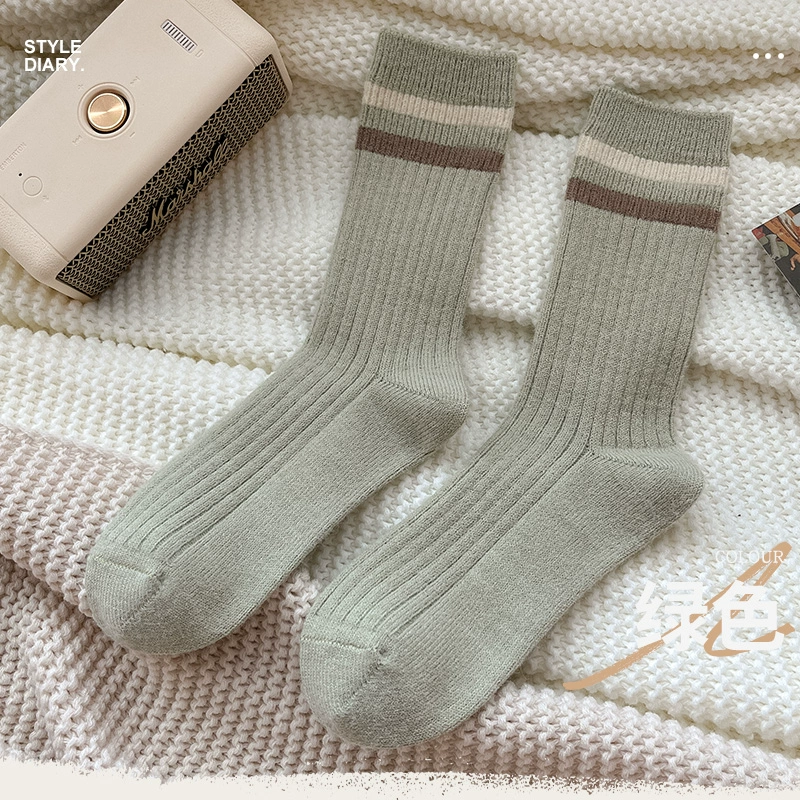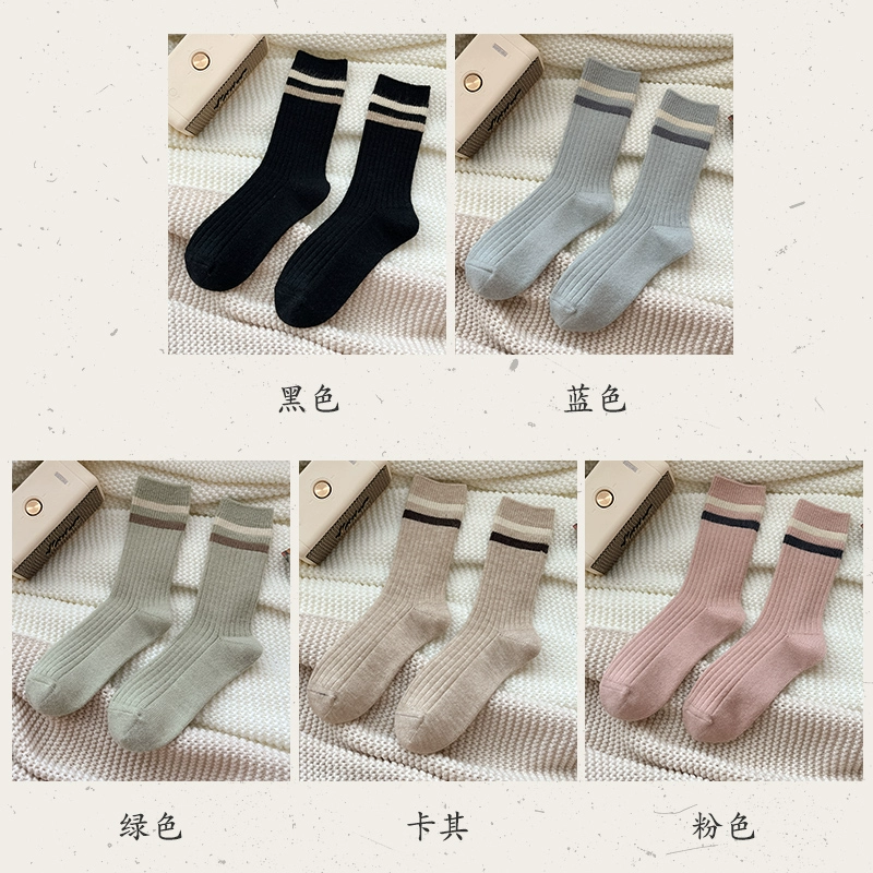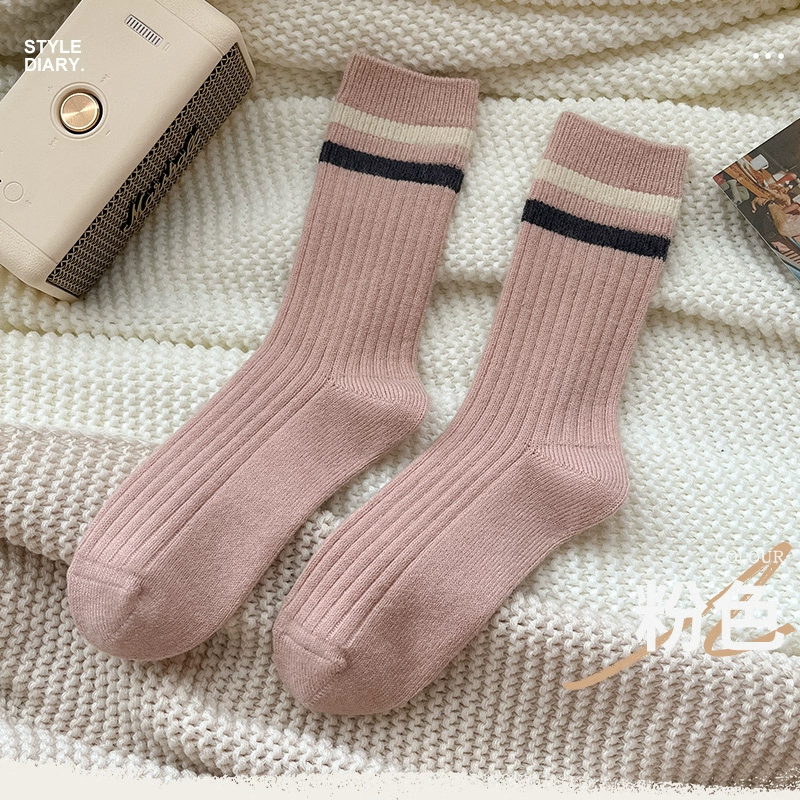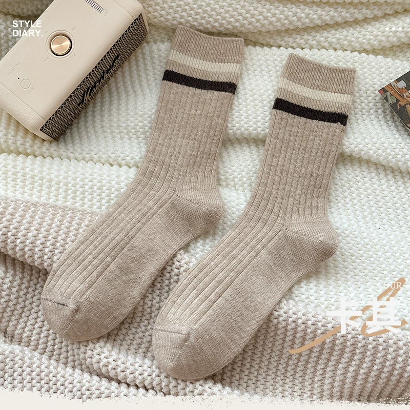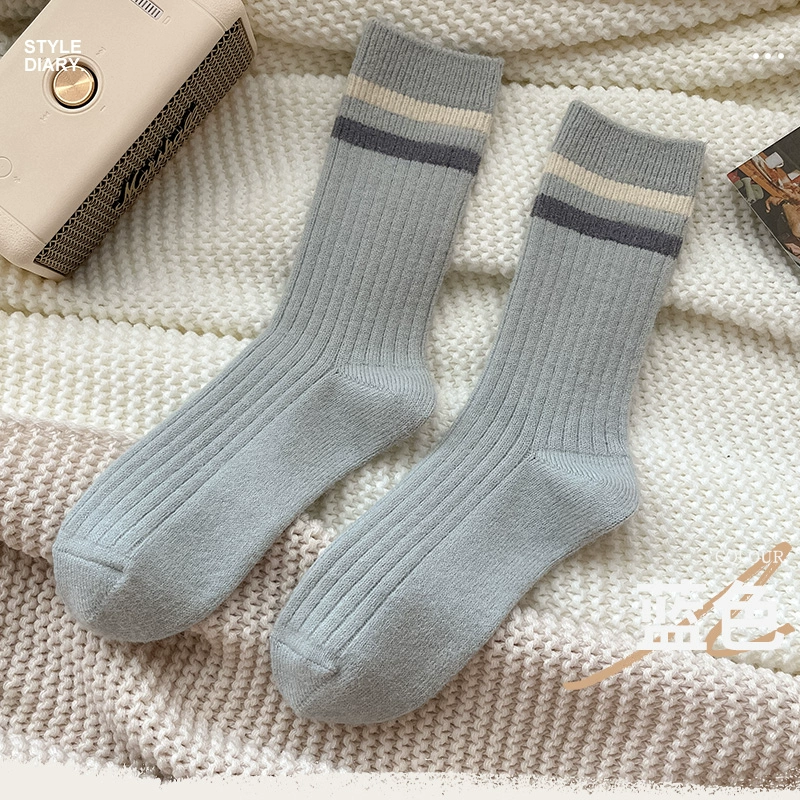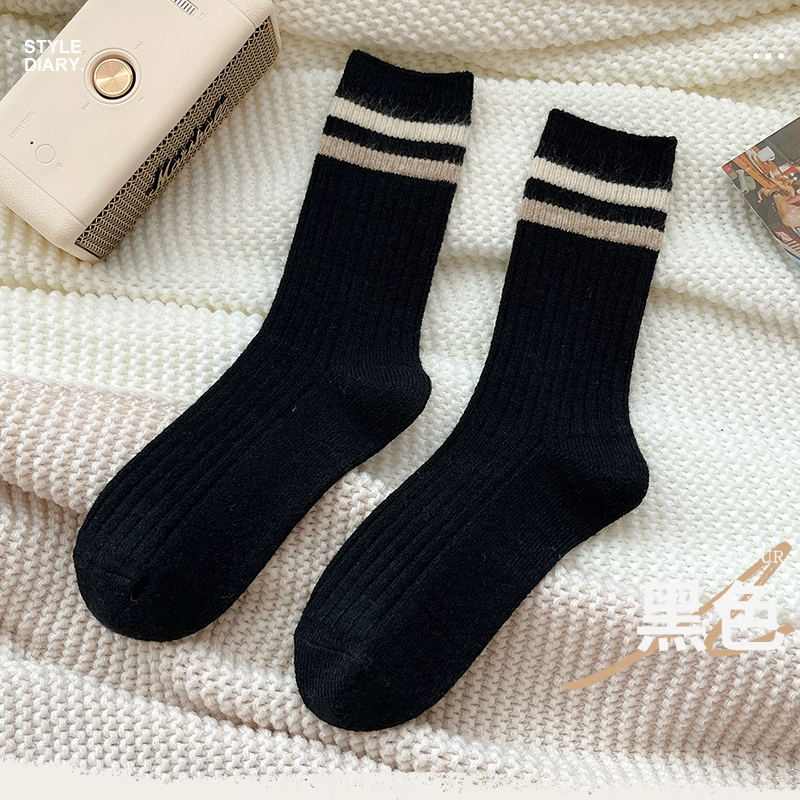 | nameOriginal | Autumn and winter women's warm thick-line two-bar stripe wool socks |