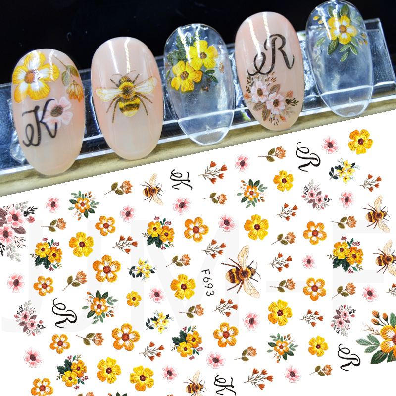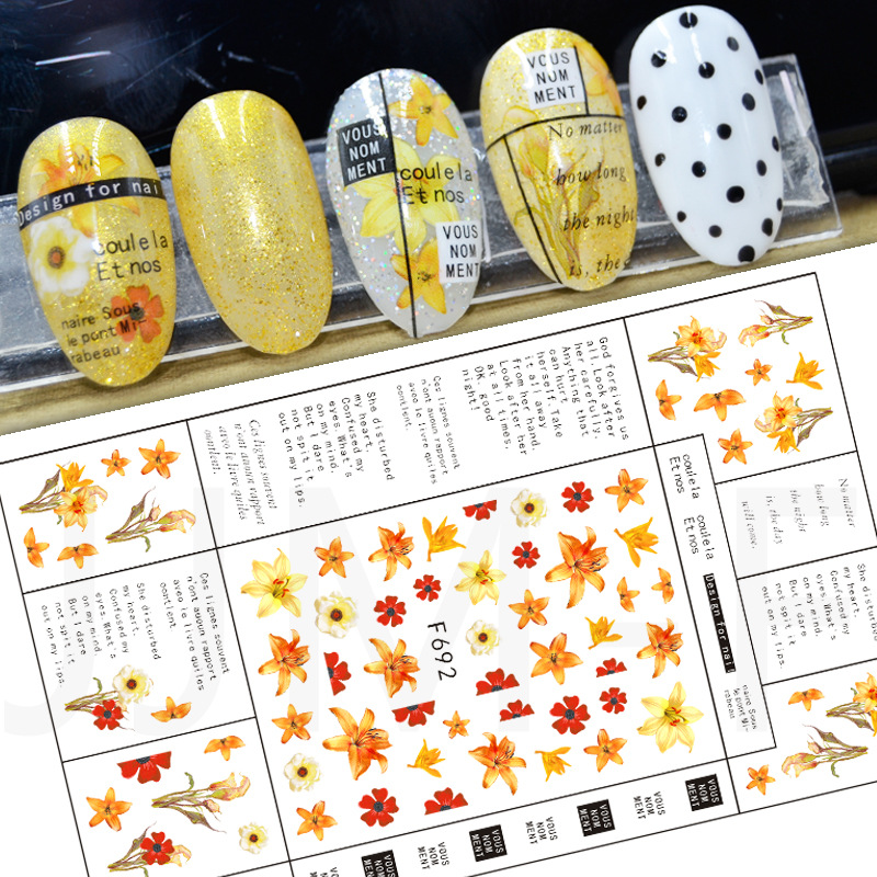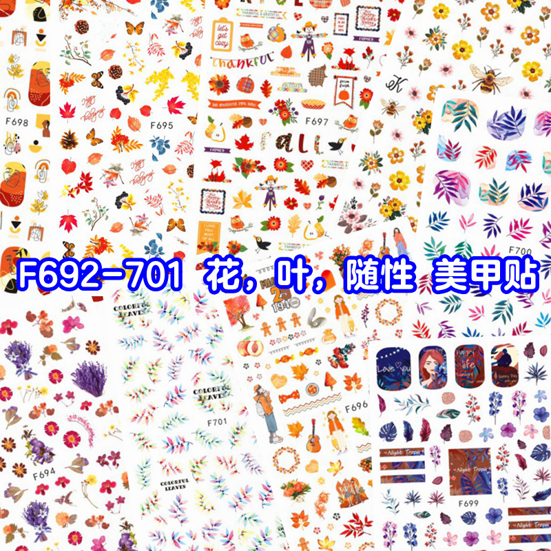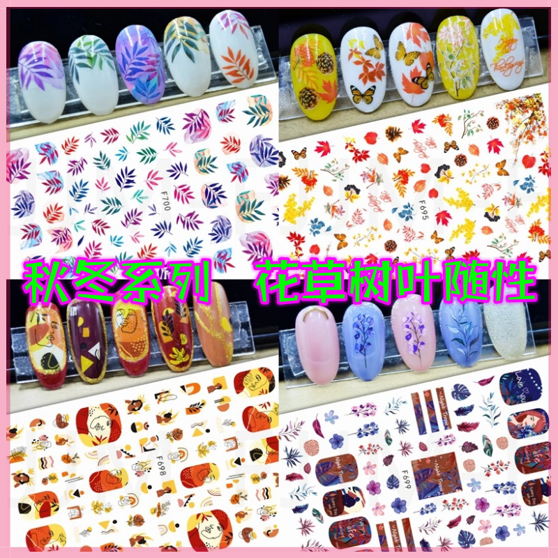 | nameOriginal | Autumn artificial flower leaves random nail sticker grass abstract portrait series nail art sticker decal set |