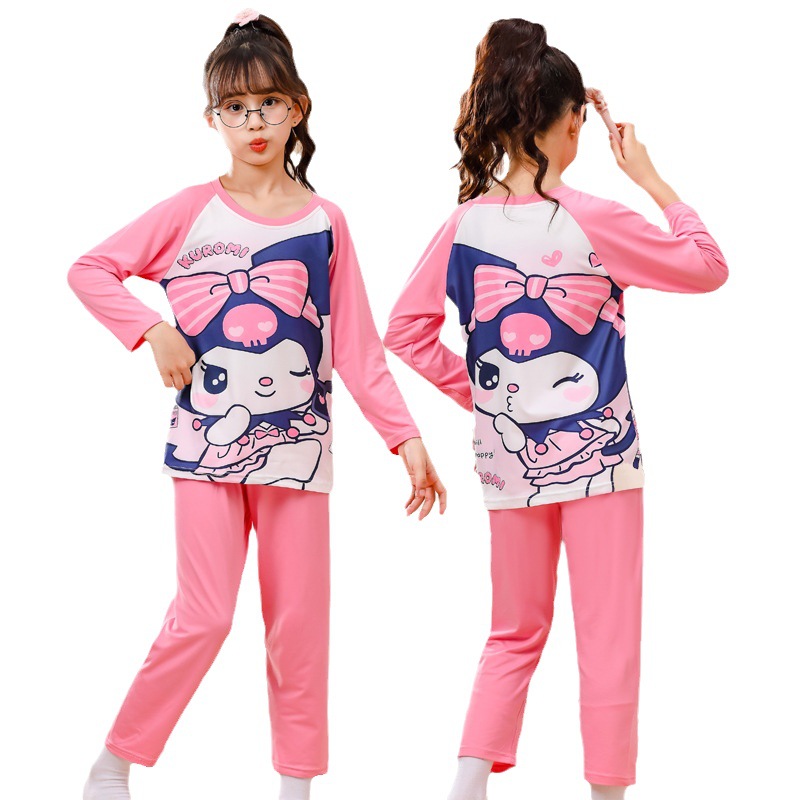 Autumn children's pajamas long-sleeved trousers sweet cute medium and big children thin comfortable home wear suit can be worn outside fashion