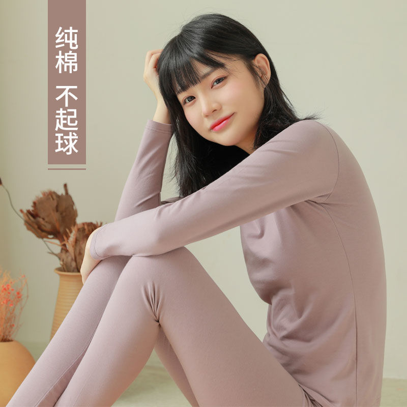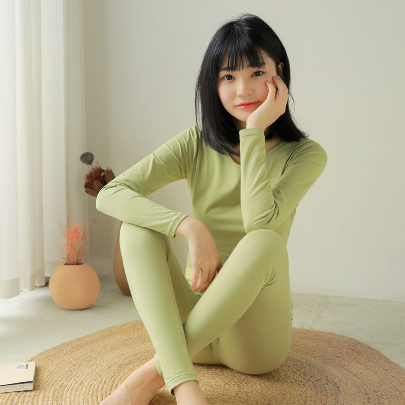 Autumn Clothes and Pants Women's Thin suit Girl Base Sweater Spring and Autumn Student Solid Color Thermal Underwear