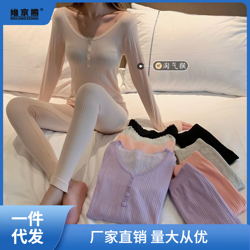 Autumn clothes long pants autumn and winter New lace bottoming shirt pit tight seamless underwear pajamas warm suit women