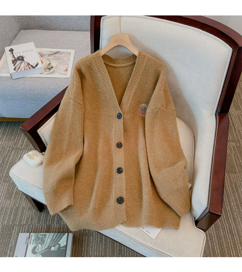 Autumn college style sweater jacket loose knitted embroidery