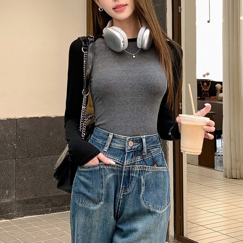 | nameOriginal | Autumn Color Matching Raglan Sleeve T-shirt All-match Round Neck Korean Style Thin Retro Slim Fit Skin-friendly Base Shirt Women's Top Strict Selection |