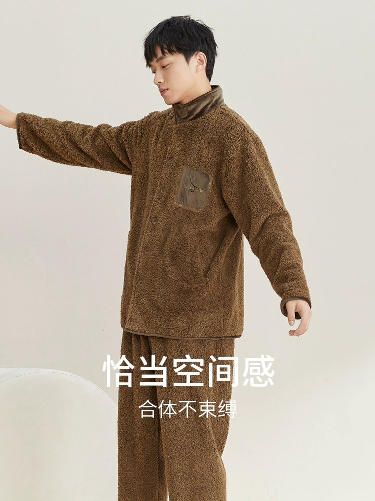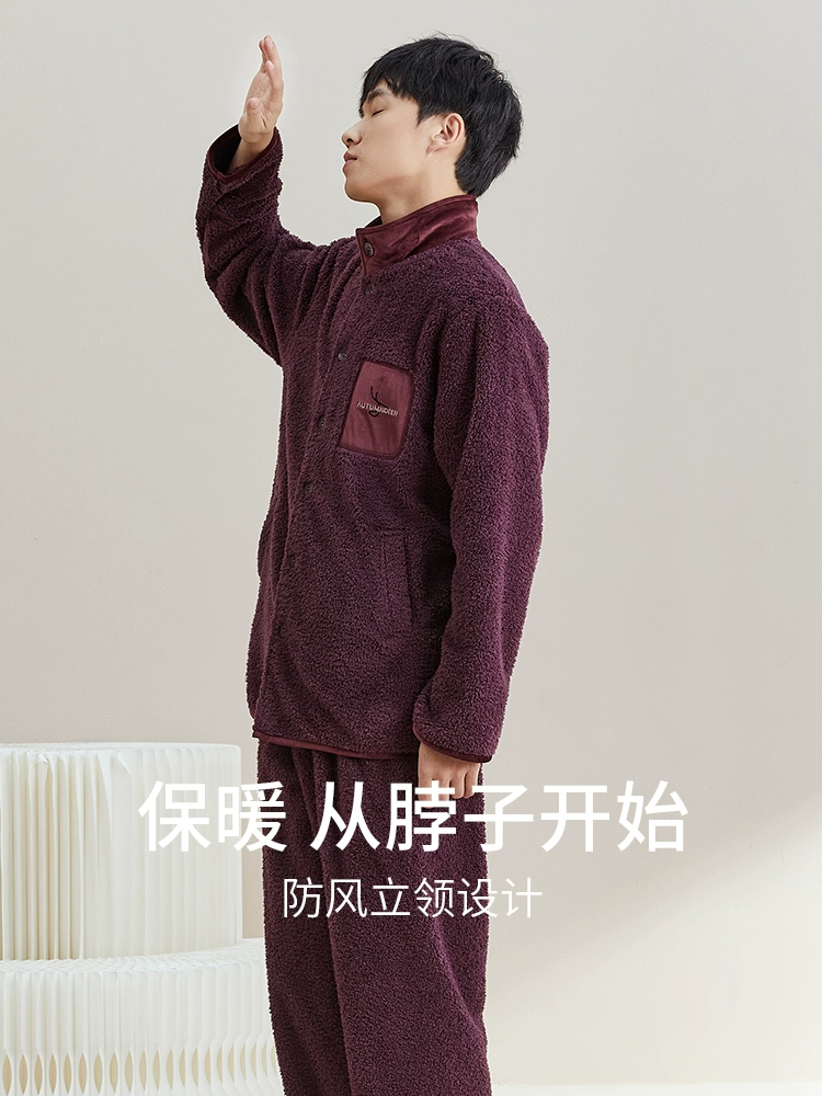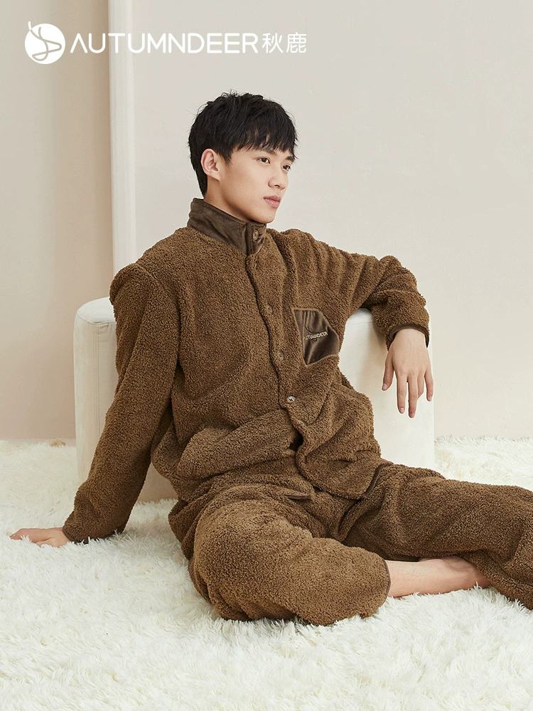 | nameOriginal | Autumn deer stand collar coral velvet pajamas for men in winter, thickened and velvet, can be worn outside, home clothes suit, autumn and winter warm men's style |