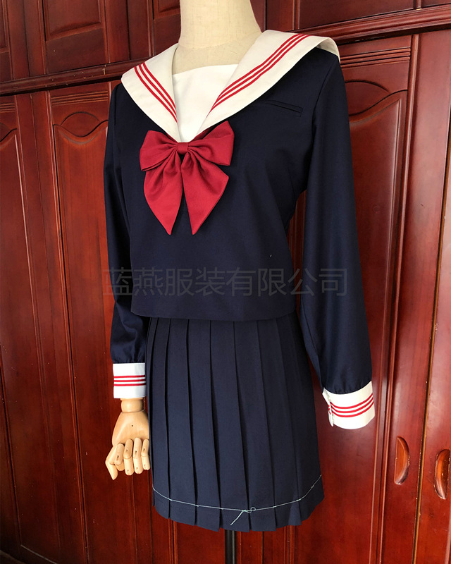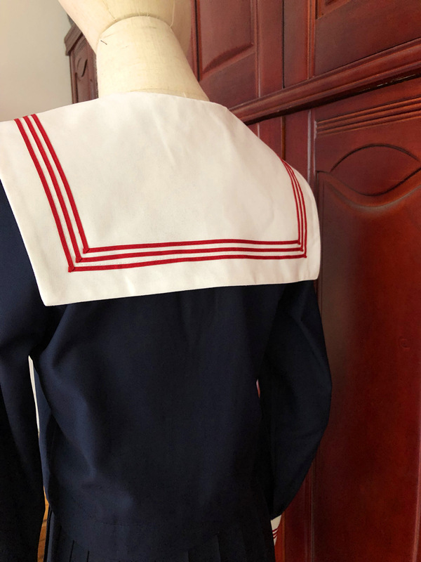 Autumn Genuine JK Uniform Deep Dark Blue Red Three Long Sleeve Kansai Sailor Suit Middle Suit Student Suit