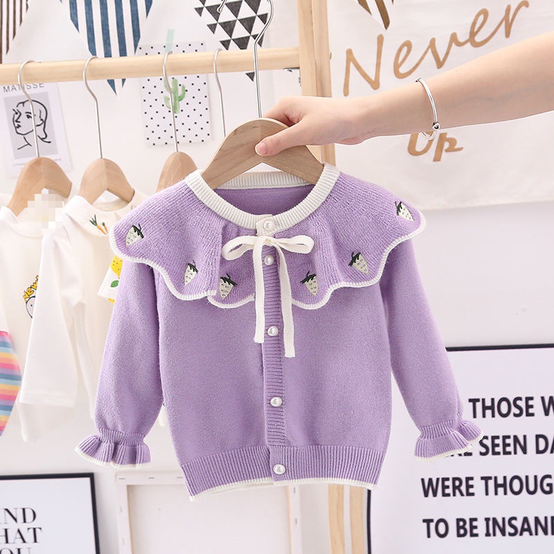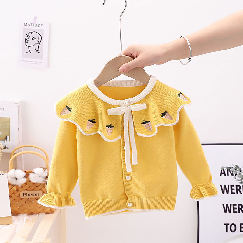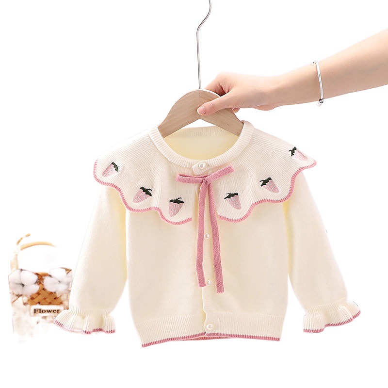 Autumn girls’ knitted cardigan strawberry lapel children’s baby girls’ sweater infant coat Western style Princess sweater
