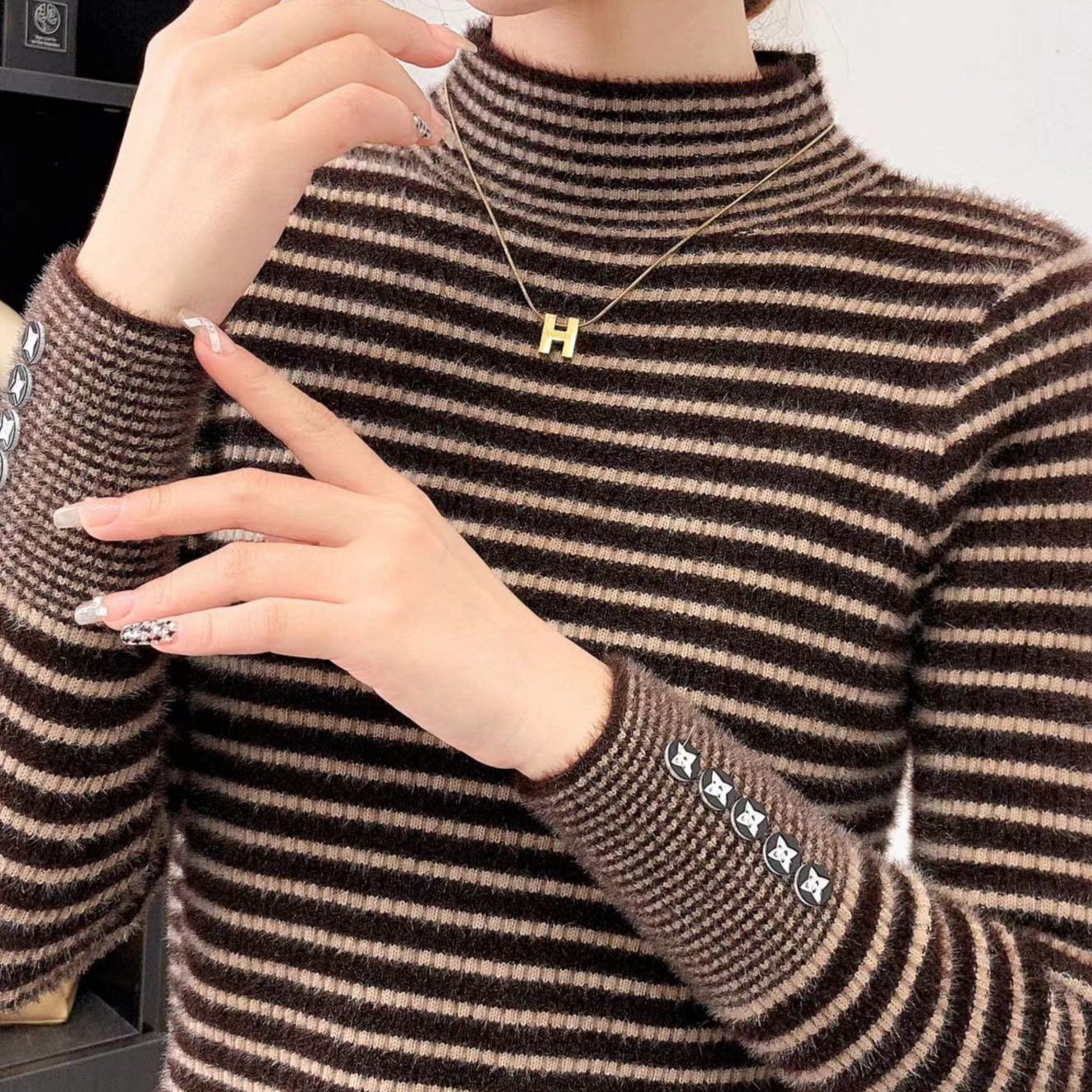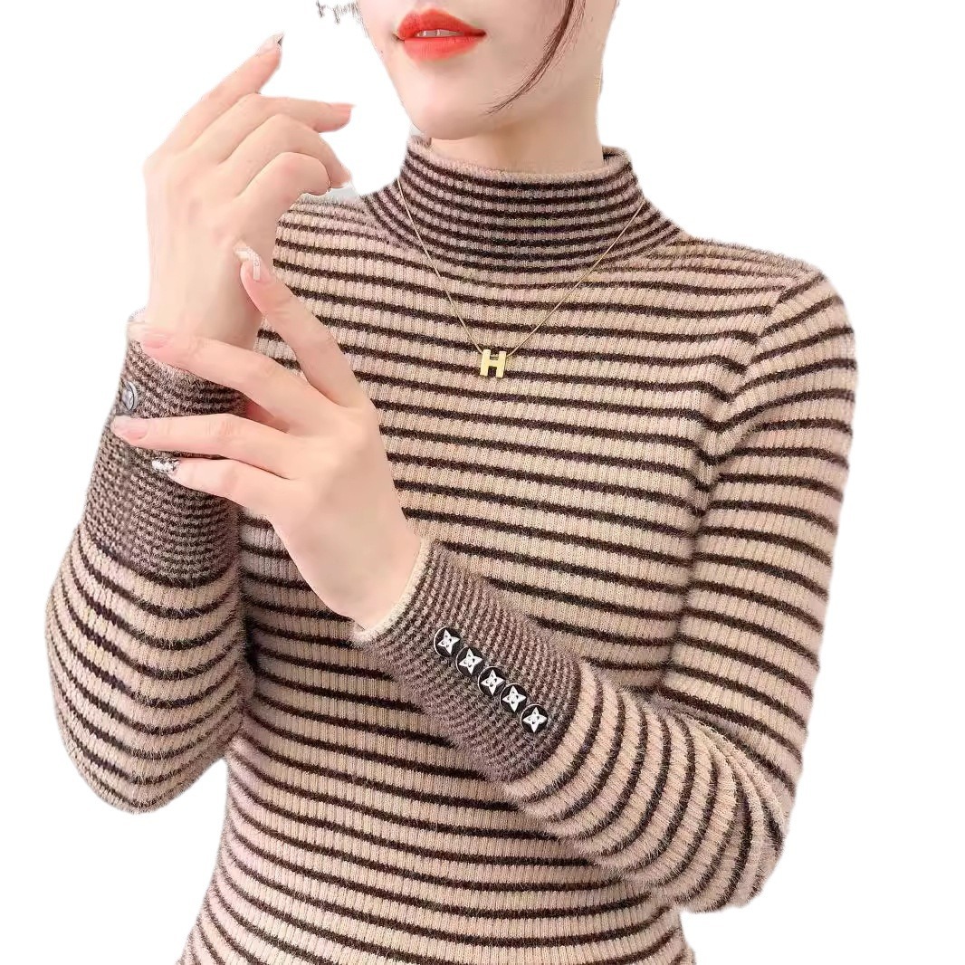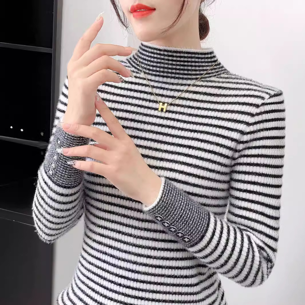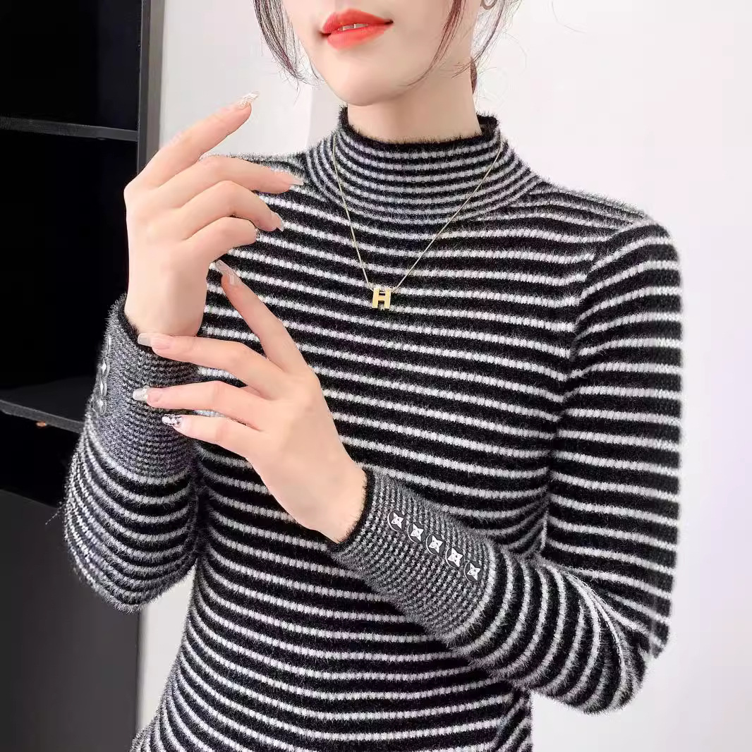 | nameOriginal | Autumn Half-turtleneck Imitation Mink Striped Sweater Women's Slim-fit All-match Slim-fit Sweater Warm Pullover Base Shirt Women |
