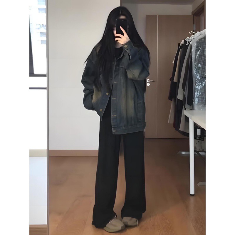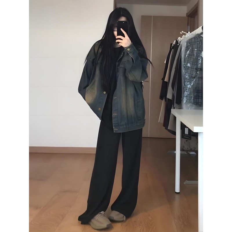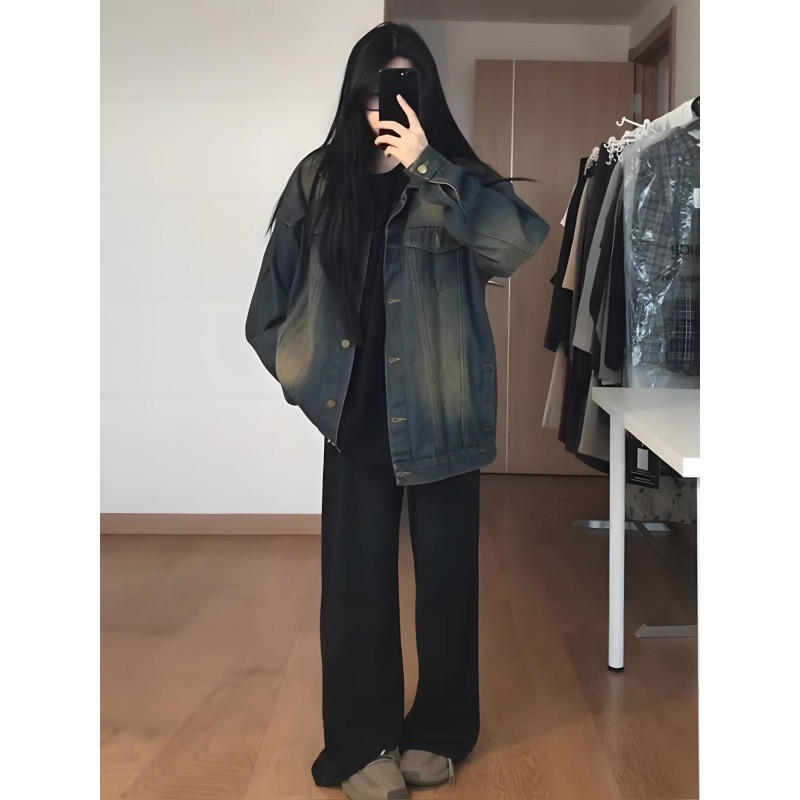 | nameOriginal | Autumn Ins Retro Denim Coat Women's 2024 Autumn New Design Sense Loose Fat M Casual Denim Top |
