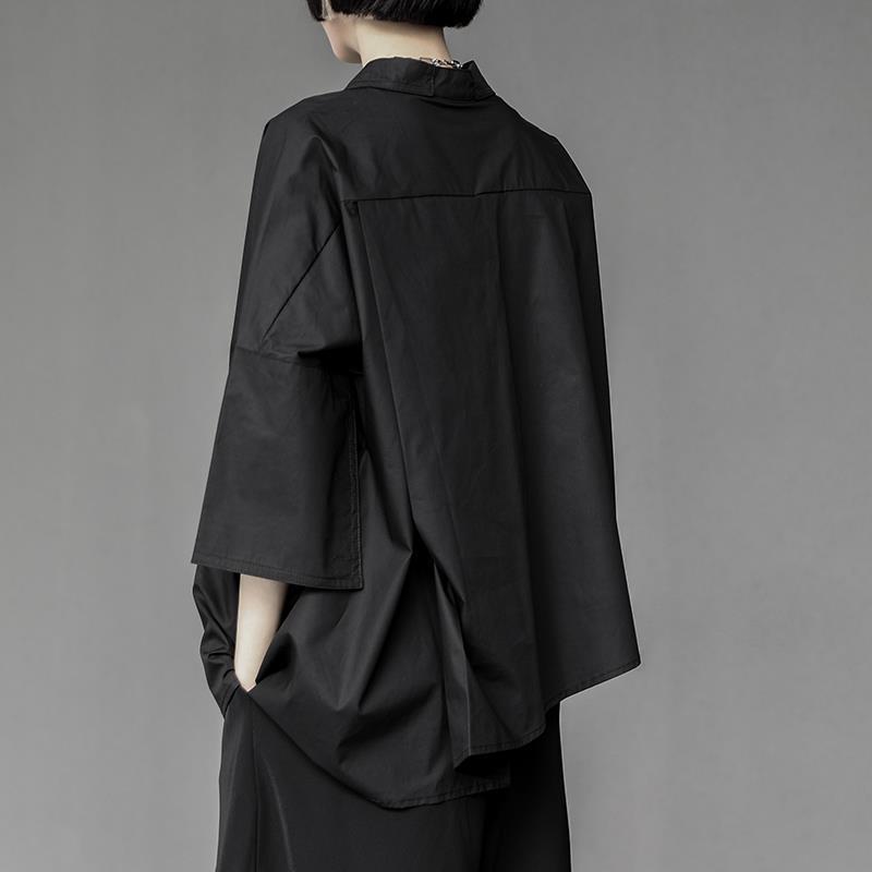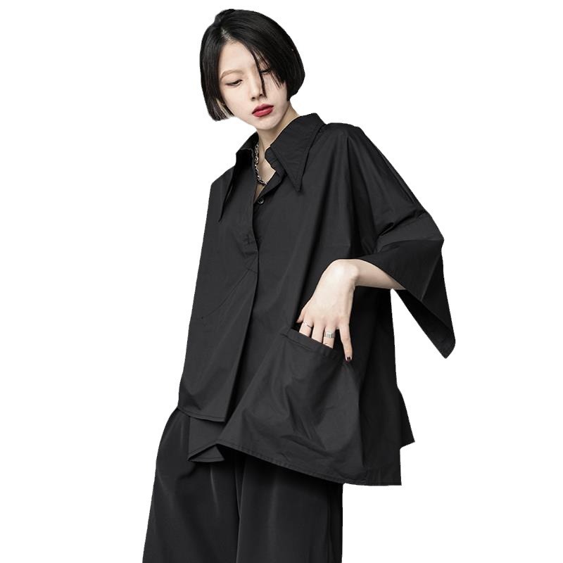 | nameOriginal | Autumn Lazy Style Loose Short-sleeved Black Shirt Women's Design Sense Niche Irregular Seven-sleeved BF Shirt Top |