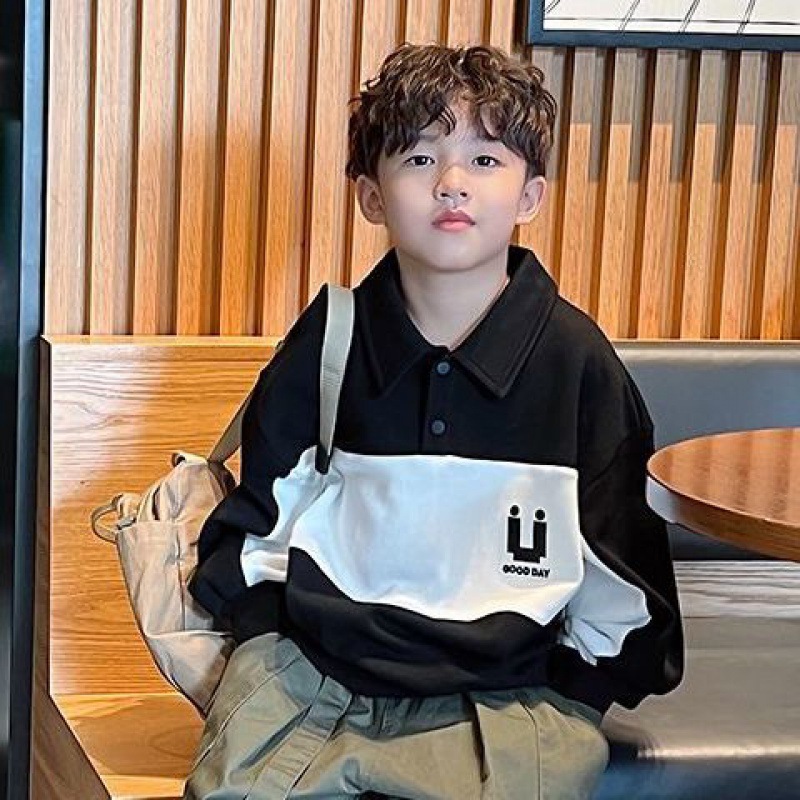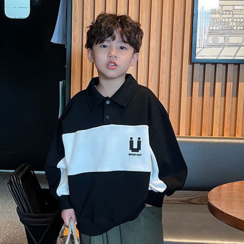 Autumn Middle and Big Children’s Fashionable Street Lapel Sweater Korean Style Western Style Children’s Shirt Boy’s Ruffian Handsome Fashion Top