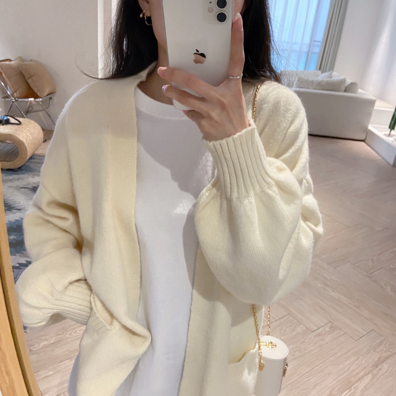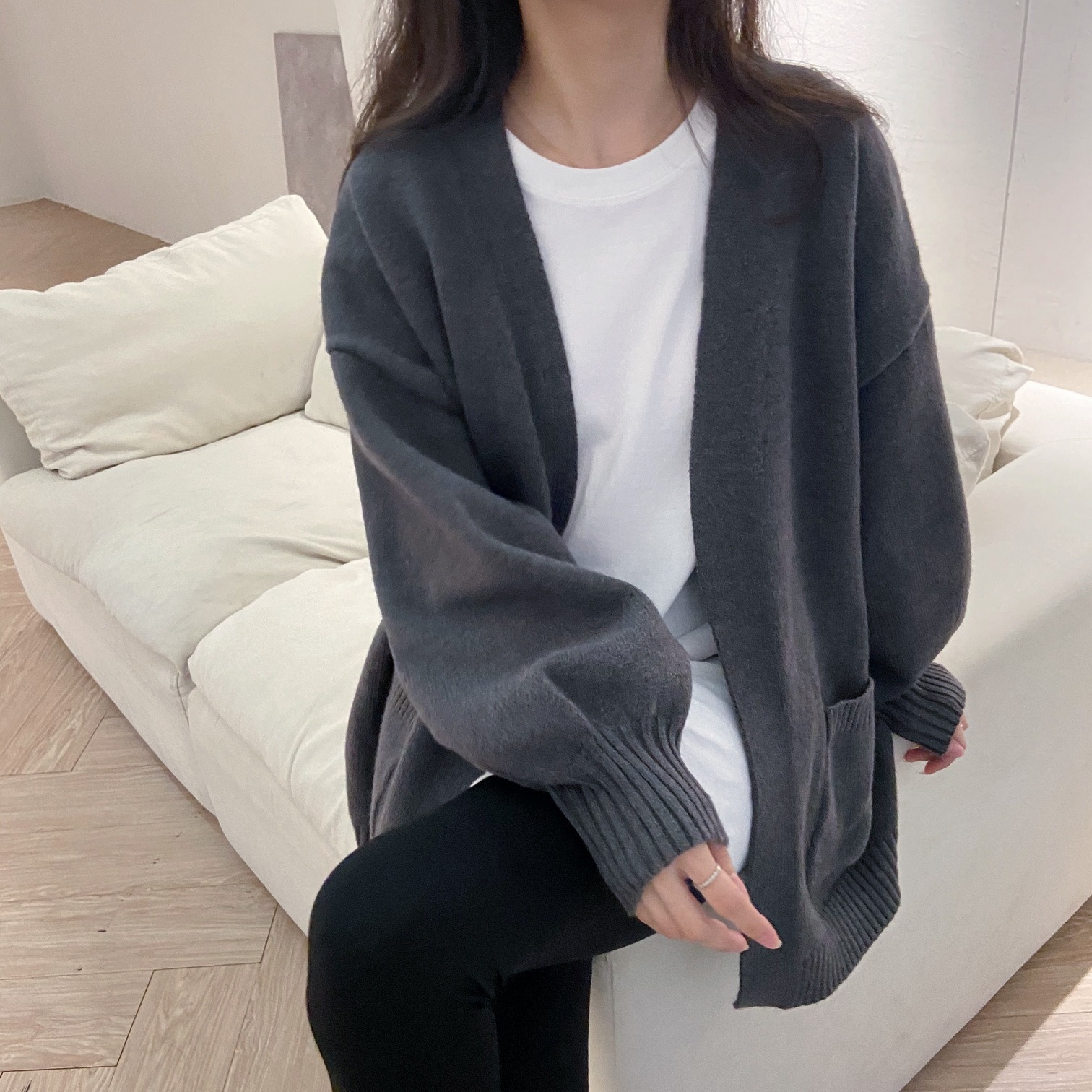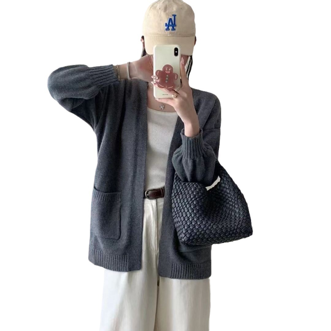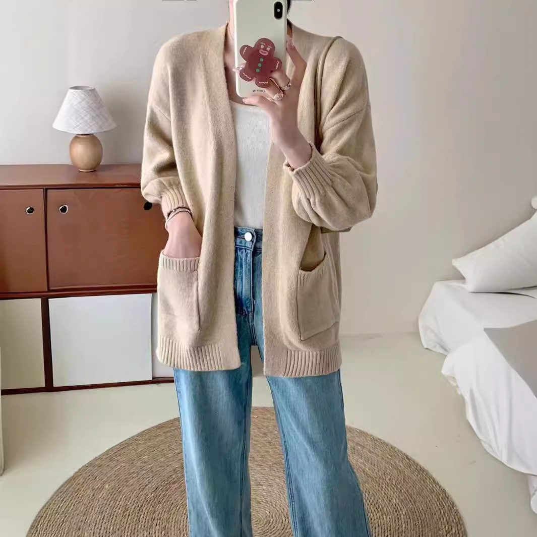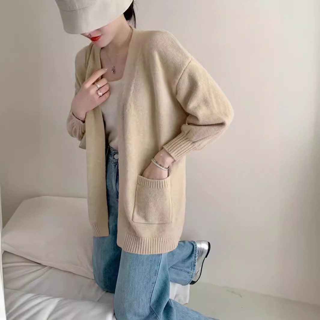 | nameOriginal | Autumn New All-match Solid Color Mid-length Sweater Coat Women's Loose Lazy Style Soft Waxy Outer Wear Thick Knitted Cardigan |