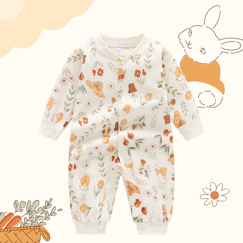 Autumn New Baby Jumpsuit Pure Cotton Boneless Long-sleeved Cardigan Climbing Clothes Men's and Women's Children's Clothing