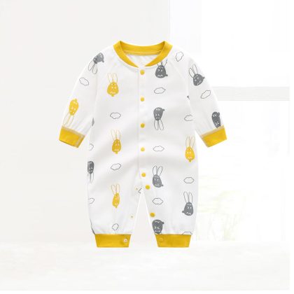 Autumn New Baby Jumpsuit Pure Cotton Boneless Long-sleeved Cardigan Climbing Clothes Men’s and Women’s Children’s Clothing
