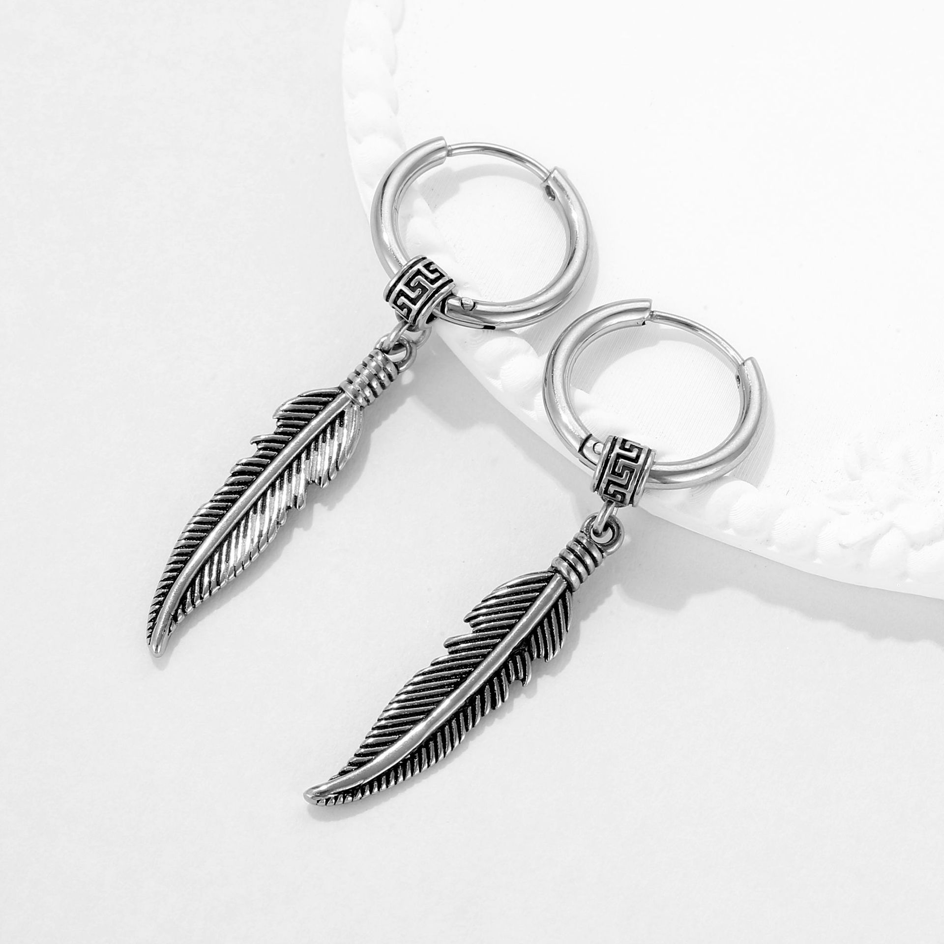 | nameOriginal | Autumn new cross-border titanium steel ear buckle eardrops ear clip non-pierced feather street hip hop ear buckle earrings earrings |