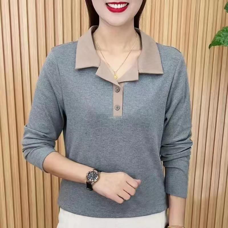 | nameOriginal | Autumn New Fake Two-piece Lapel Long-sleeved Base Shirt Women's 2024 Elegant Age-reducing Polo Collar All-match Mom Top |