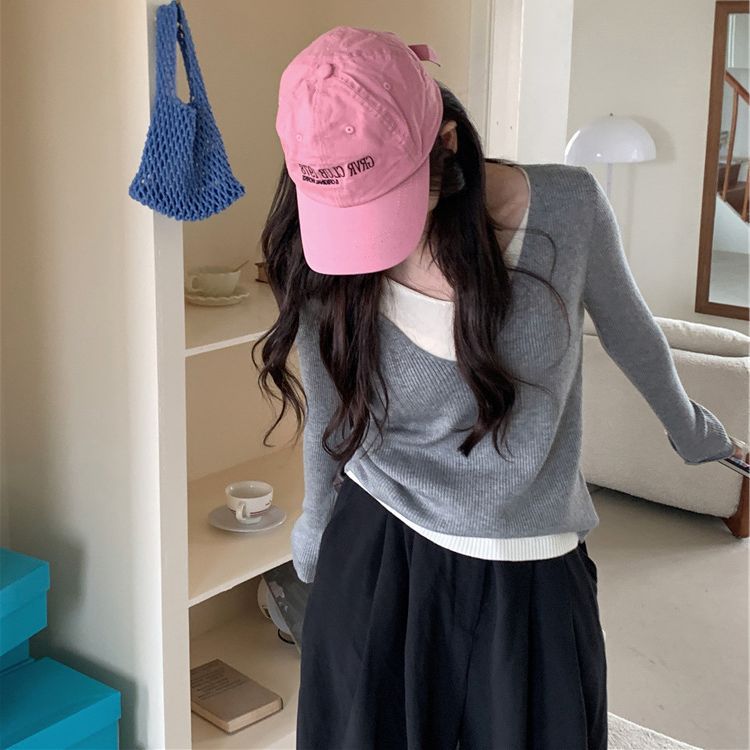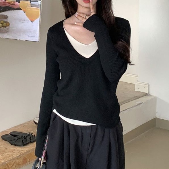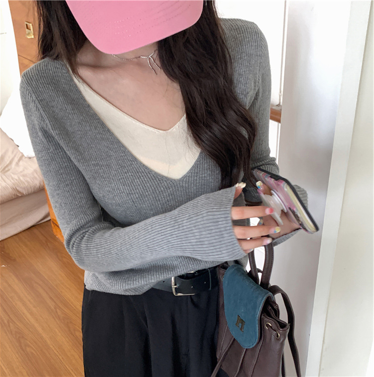 | nameOriginal | Autumn new fake two-piece V-neck knitted bottoming shirt Women's Korean style new versatile slimming temperament pullover sweater |