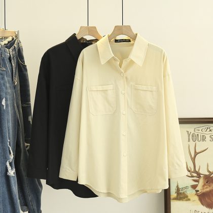 | nameOriginal | Autumn New Korean style chubby girl simple all-match casual long-sleeved shirt shirt plus size women's clothing 6721 |
