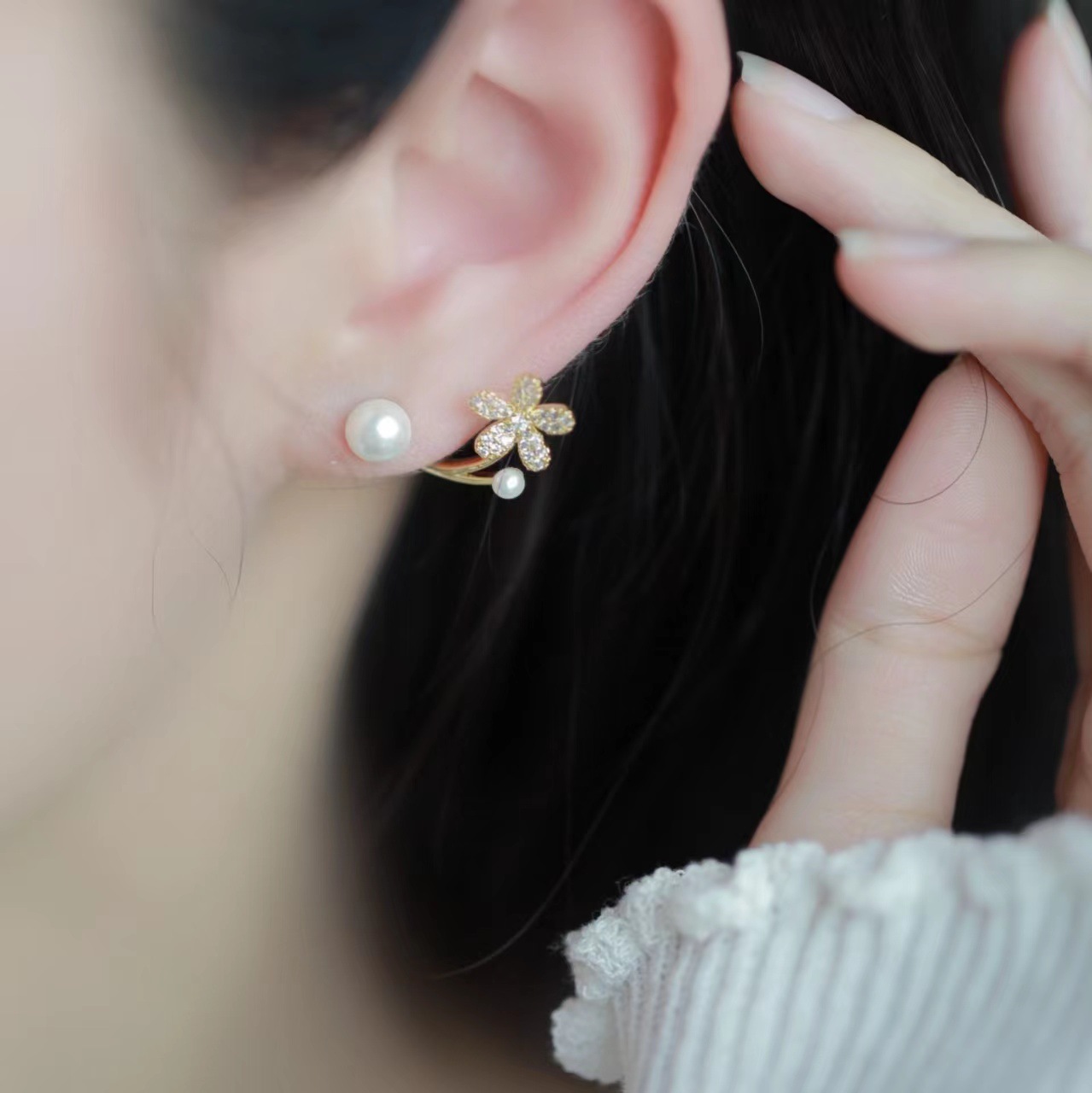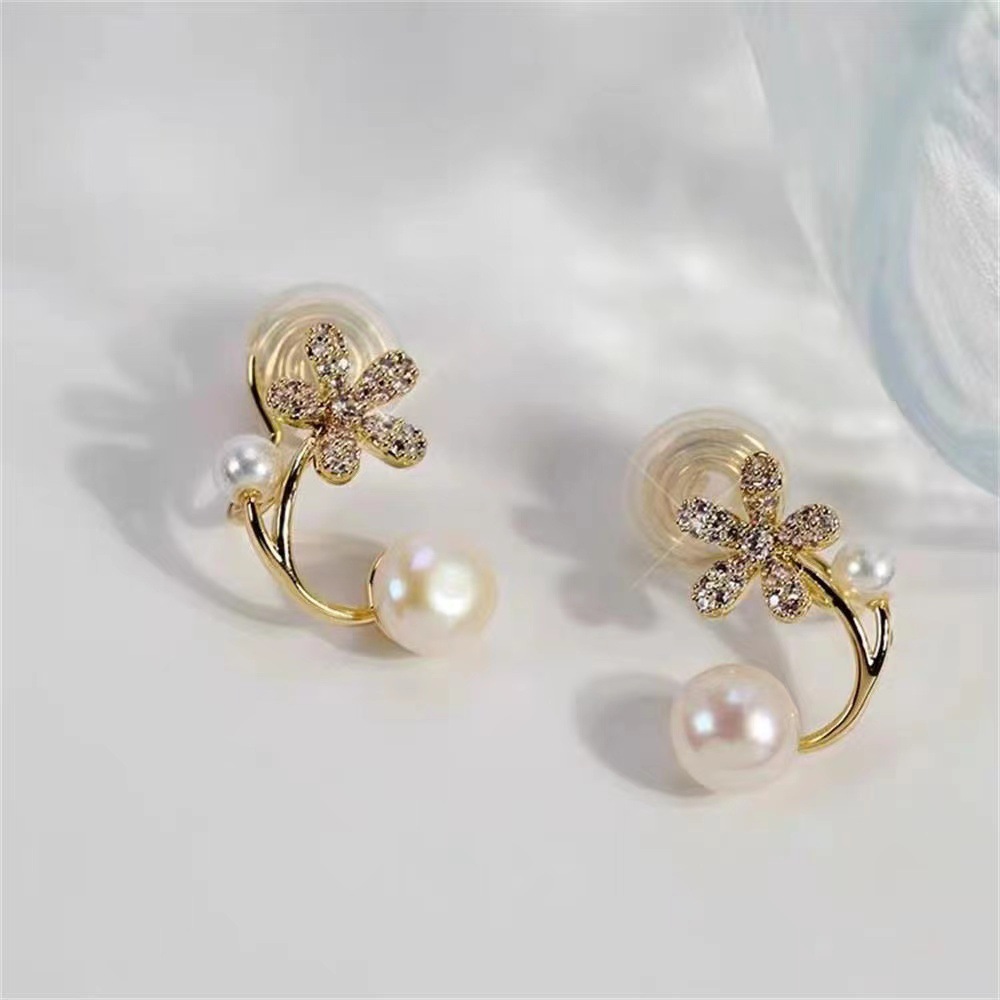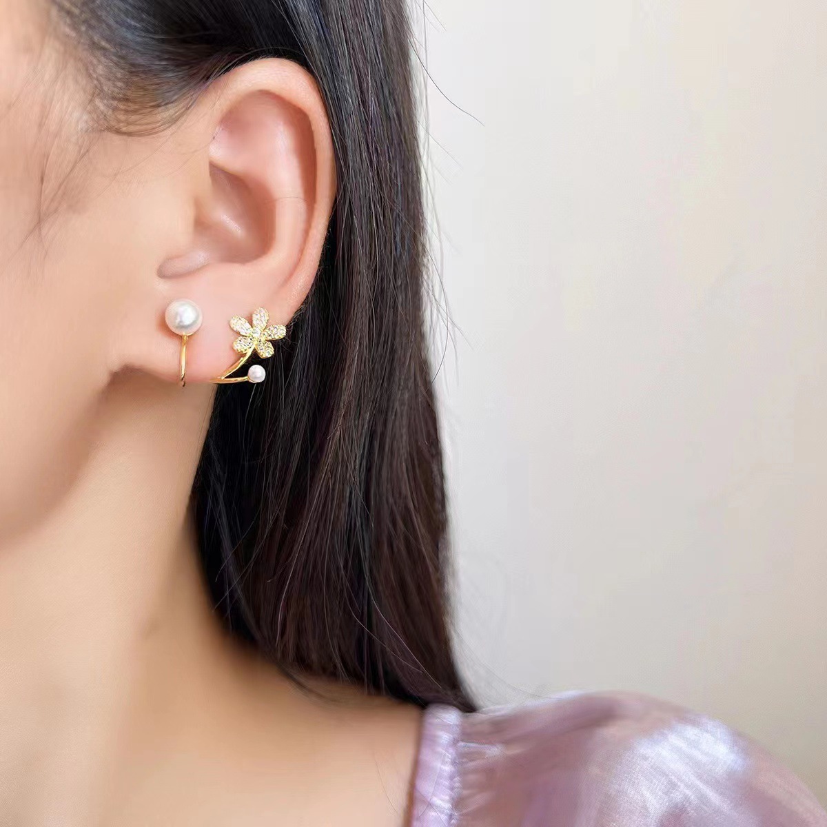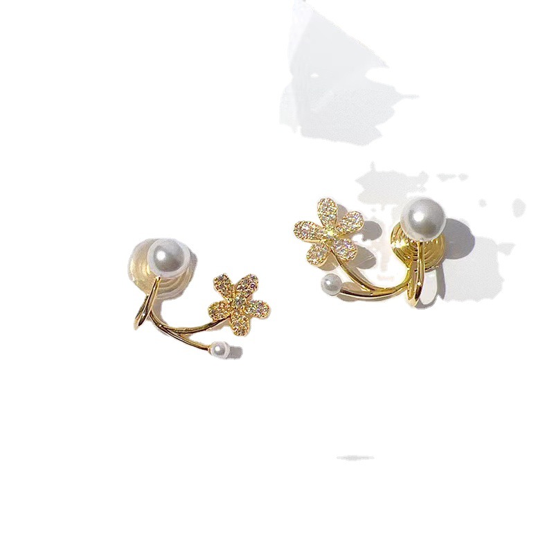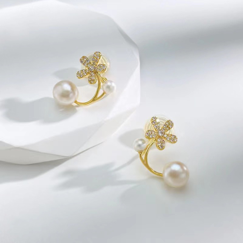 Autumn New Pearl Flower Design Sense One-piece Mosquito Incense Plate Earrings Women's Light Luxury Zircon Earrings Wholesale