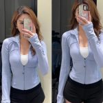 | nameOriginal | Autumn New rib women's short Lulu swift speed zipper cardigan slim stand collar sports jacket |