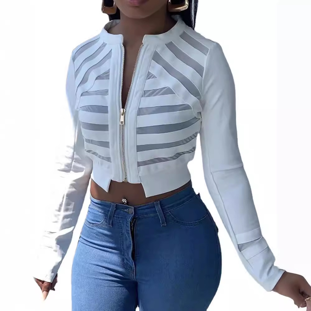 | nameOriginal | Autumn New Round Neck Transparent Mesh Zipper Long Sleeve Top Casual Women's Irregular Coat Fashionable Tight Jacket |