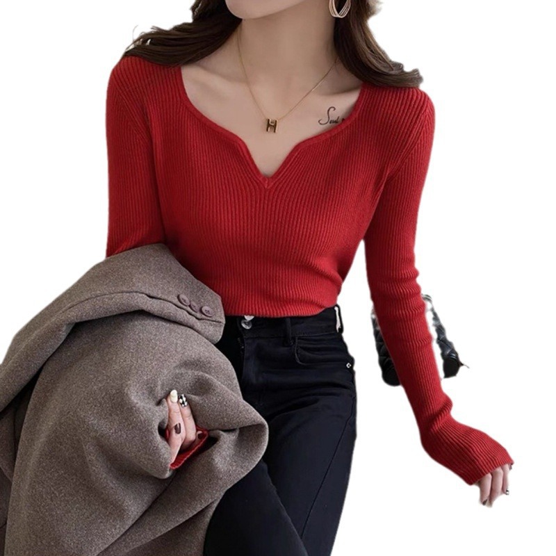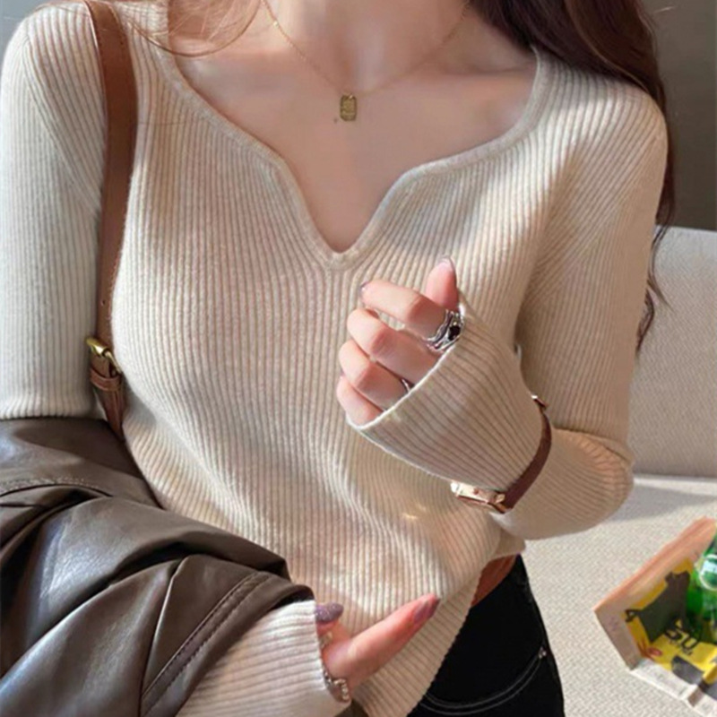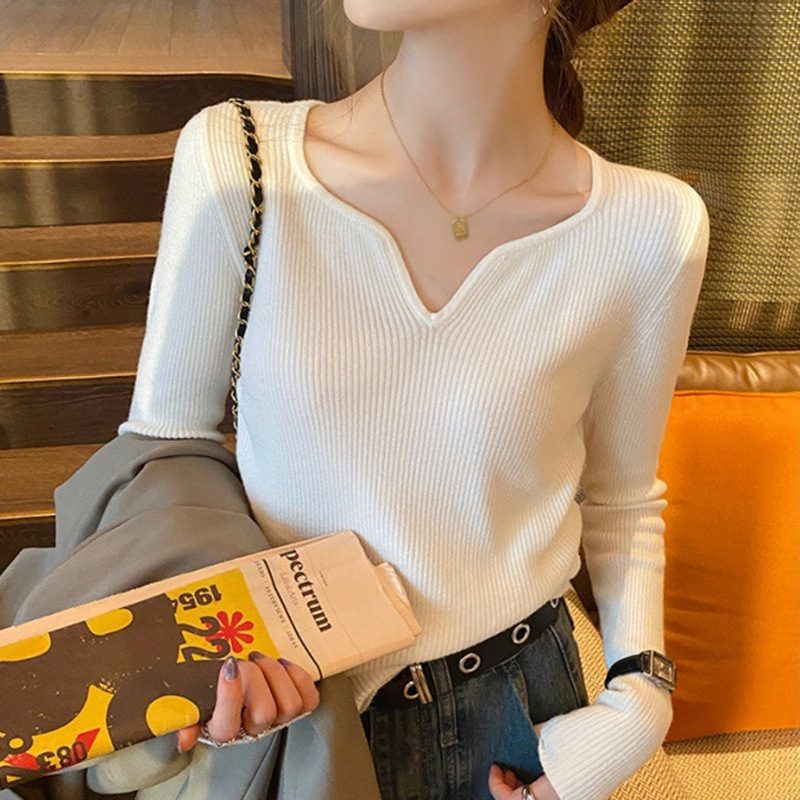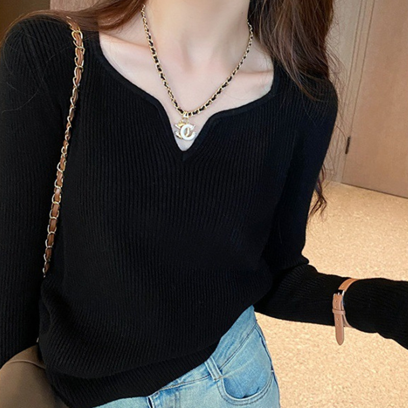 Autumn New Soft Waxy Long Sleeve Versatile Solid Color Slim Base Shirt Design Sense Sweater Women's Inner Sweater Women's Trendy
