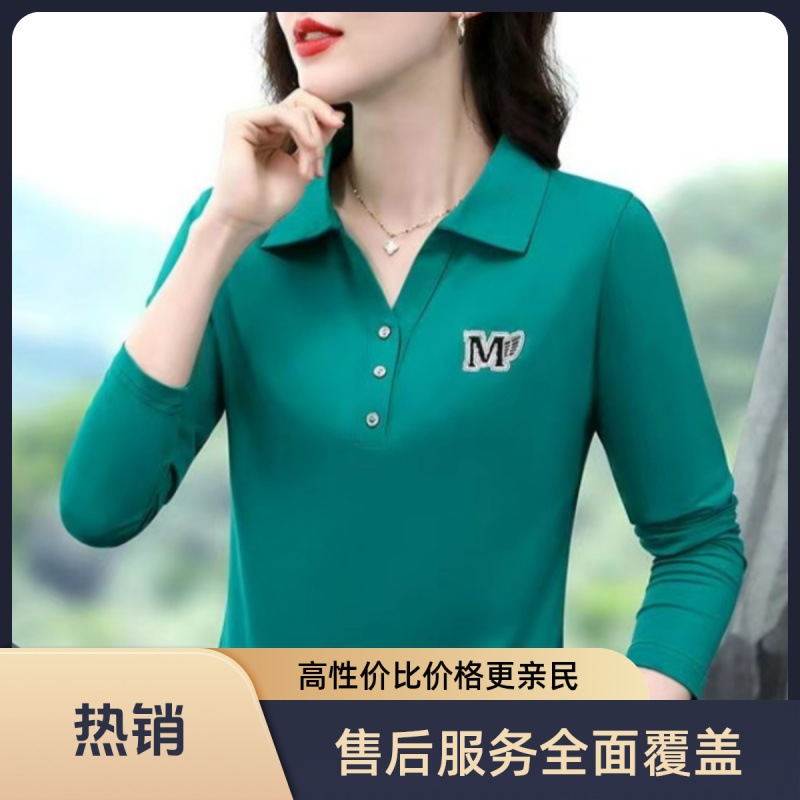 | nameOriginal | Autumn New Solid Color Long-sleeved T-shirt Base Shirt Women's 2024 Elegant Slim-fit Polo Collar All-match Mom Top |
