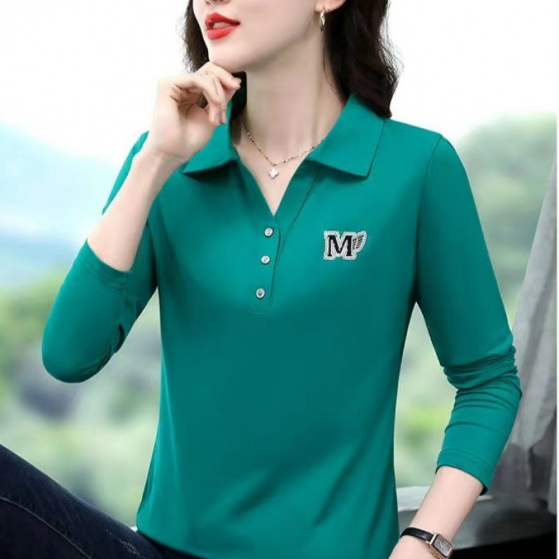 | nameOriginal | Autumn New Solid Color Long-sleeved T-shirt Base Shirt Women's 2024 Elegant Slim-fit Polo Collar All-match Mom Top |