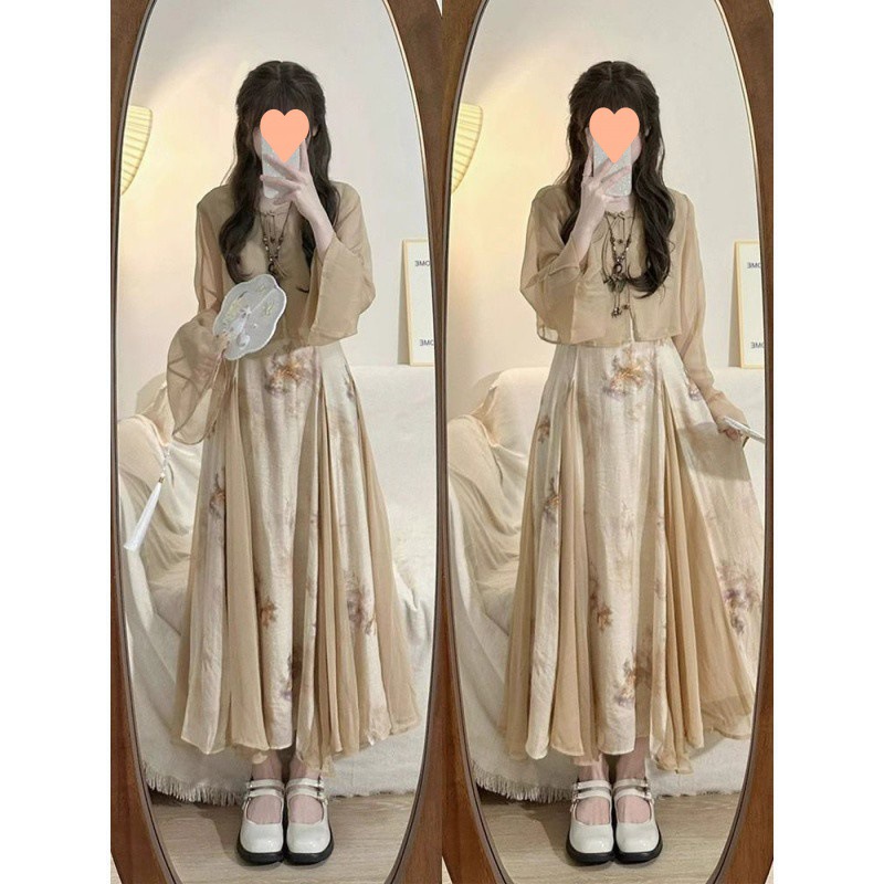 | nameOriginal | Autumn New Women's Clothing New Chinese Style Cool Feeling Light National Style suit Halter Skirt Cardigan Two-Piece dress Dress |