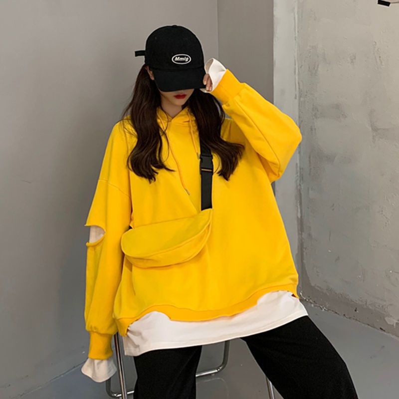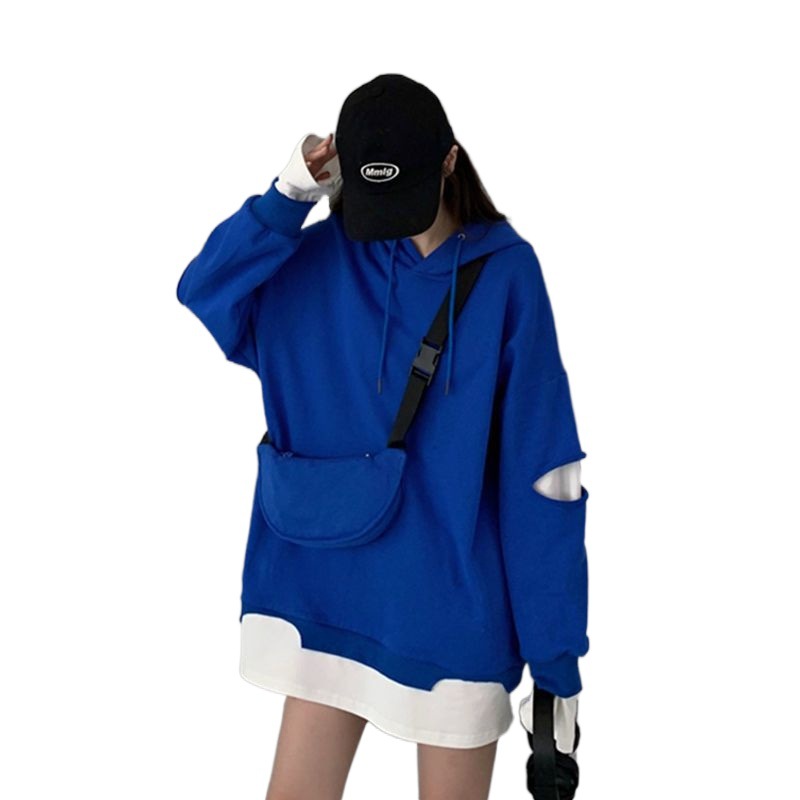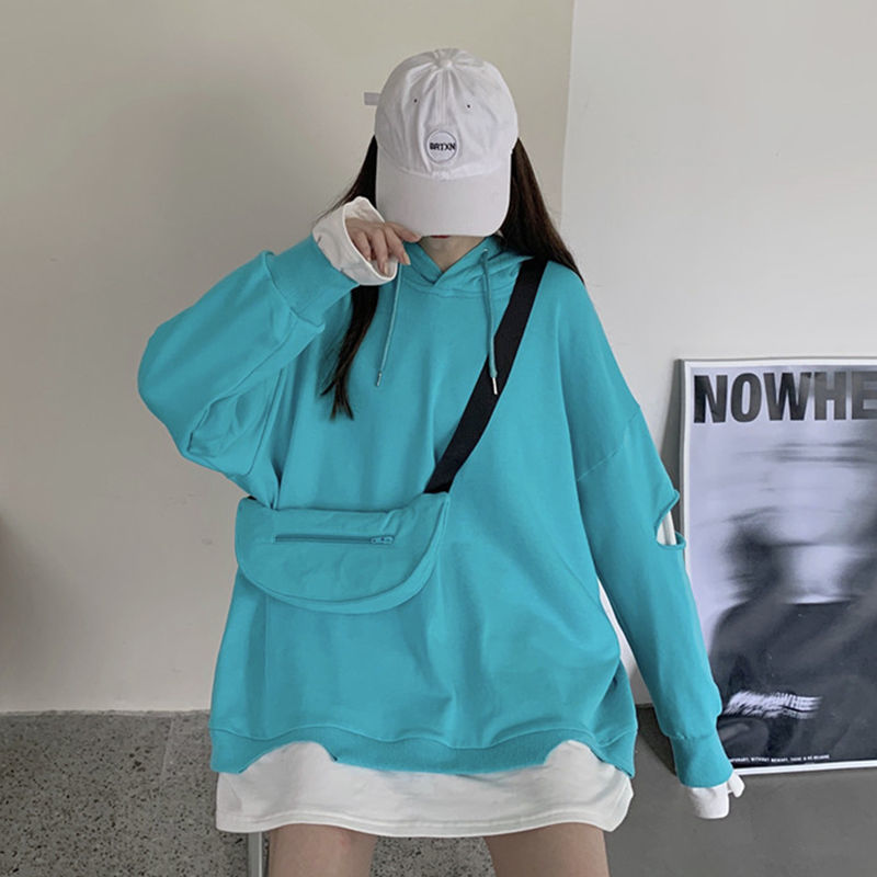 Autumn New Women’s Fashionable Sweatshirt Hooded Student Korean-style Loose Lazy Style Stitching Jacket Fake Two-piece Top