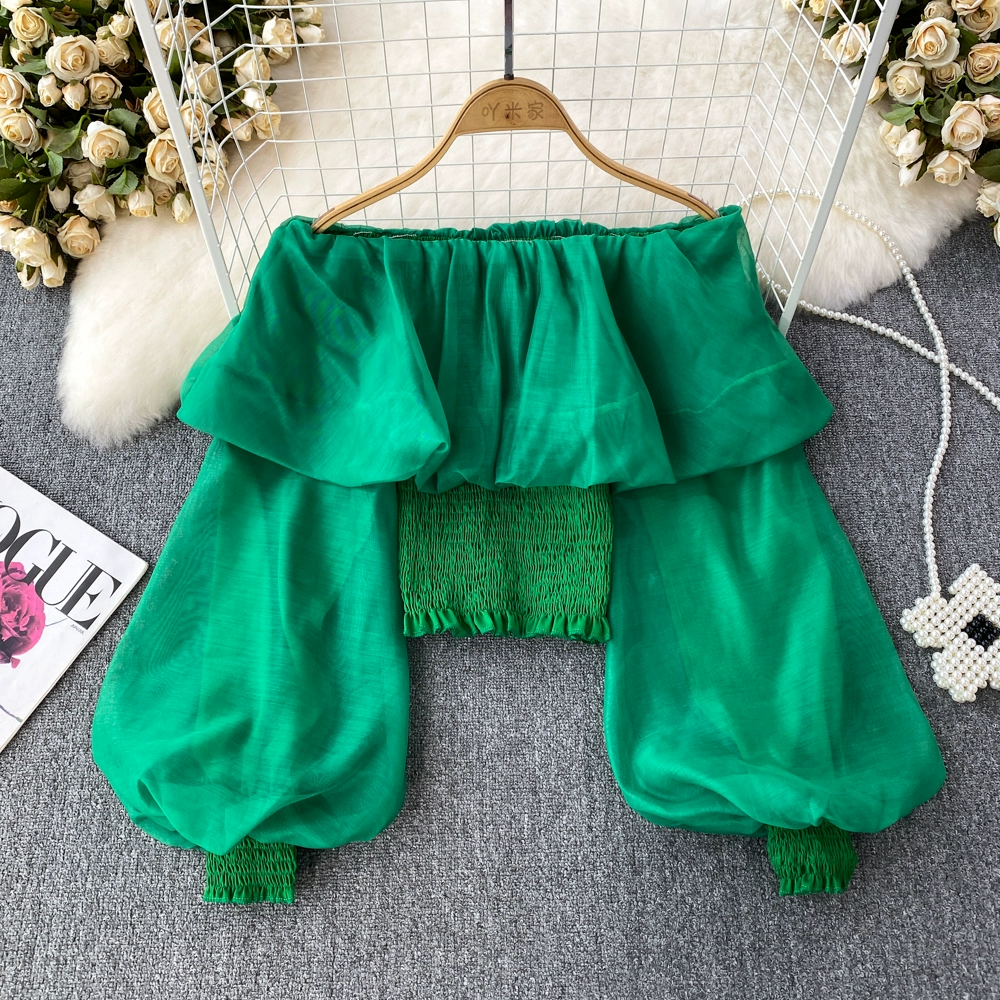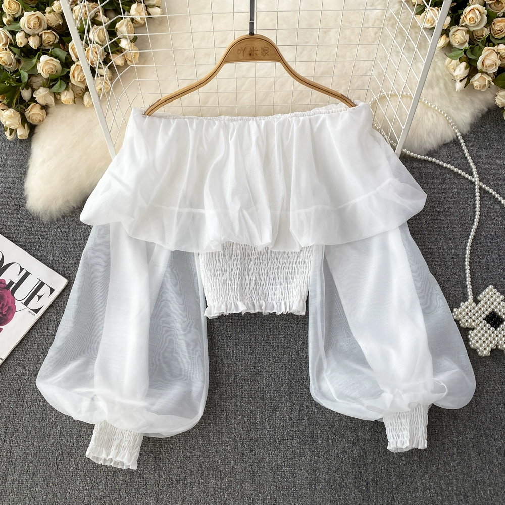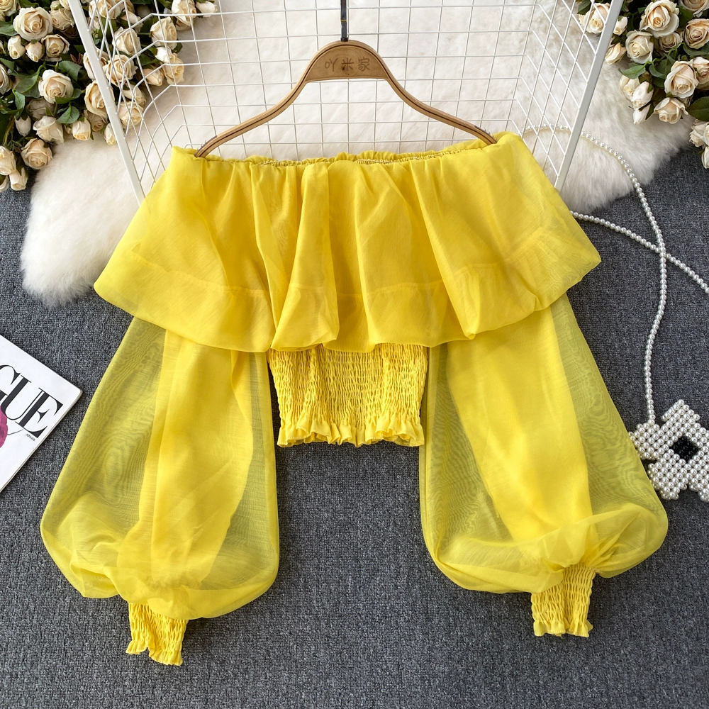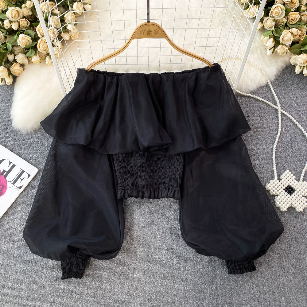 Autumn niche lantern sleeve slightly see-through short top chiffon shirt