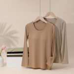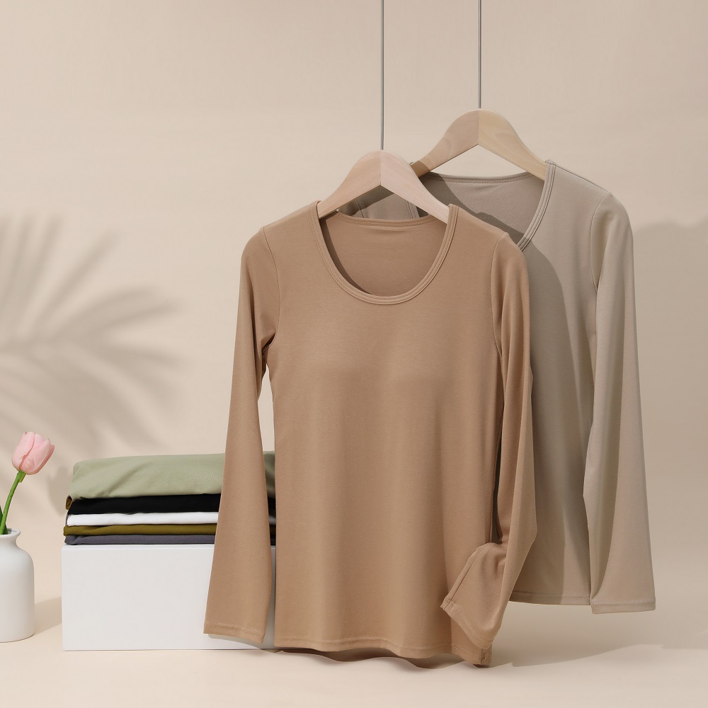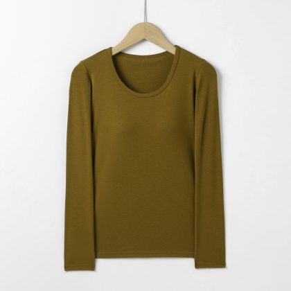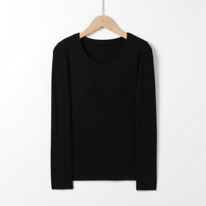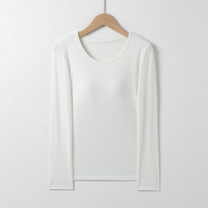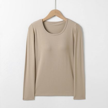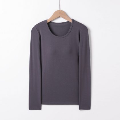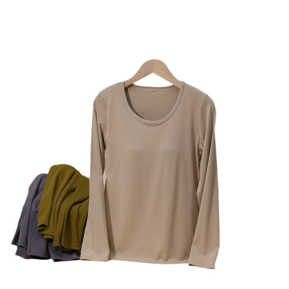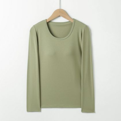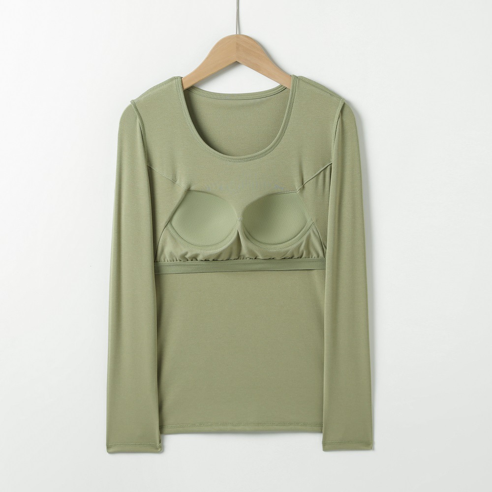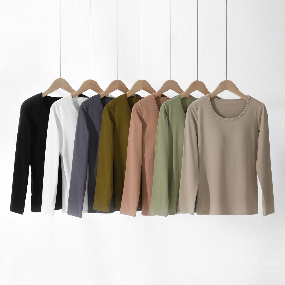 Autumn One-piece Long-sleeved T-shirt with Chest Pad All-match Crewneck Long-sleeved Women’s Slim-fit Top Commuting Cotton Mimo Mix and Match