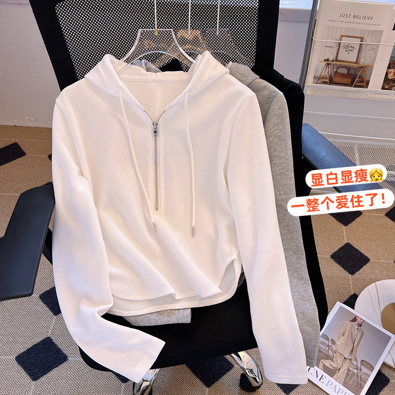 | nameOriginal | Autumn Outer Wear Hooded Sweater Women's 2022 New Design Sense Niche Short Long Sleeve Top Slim Fit Base Shirt for Women |