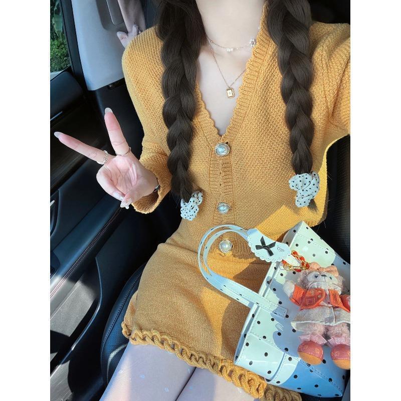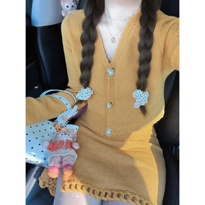 | nameOriginal | Autumn outfit with a set of small fragrant style knitted cardigan hip skirt lively and playful two-piece suit |