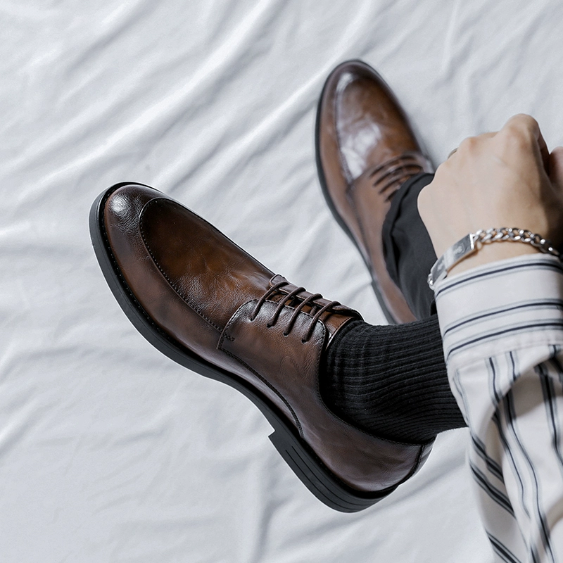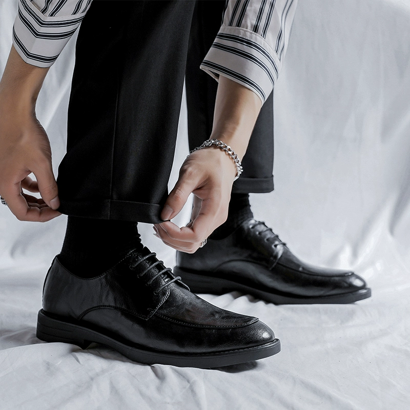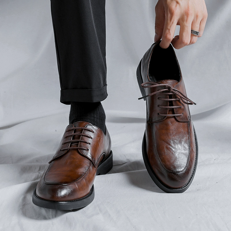 Autumn pointed leather shoes men's business formal wear genuine leather breathable casual British style work shoes suit wedding groom's shoes