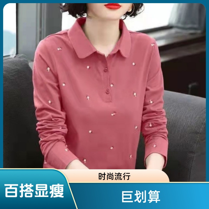 | nameOriginal | Autumn Polo Shirt Long-sleeved T-shirt Women's Loose plus size Mother 2024 New All-match Slim-fit Top Base Shirt |