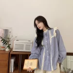 | nameOriginal | Autumn pressed lace striped shirt loose and artistic |
