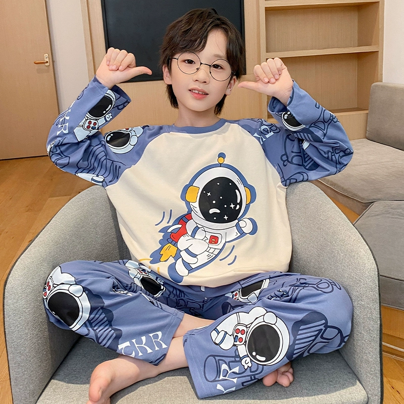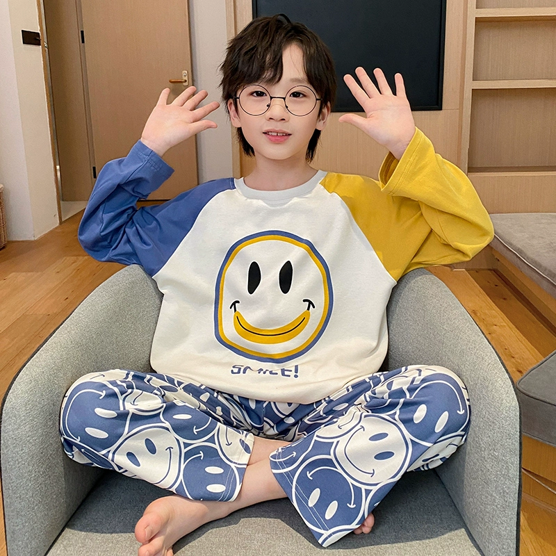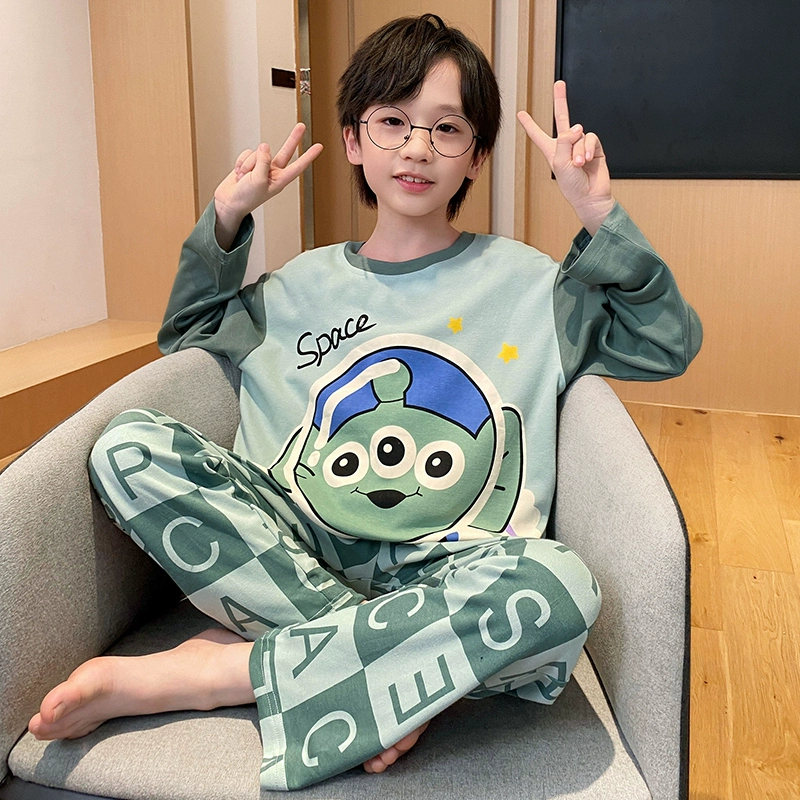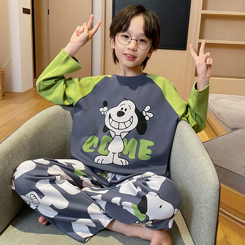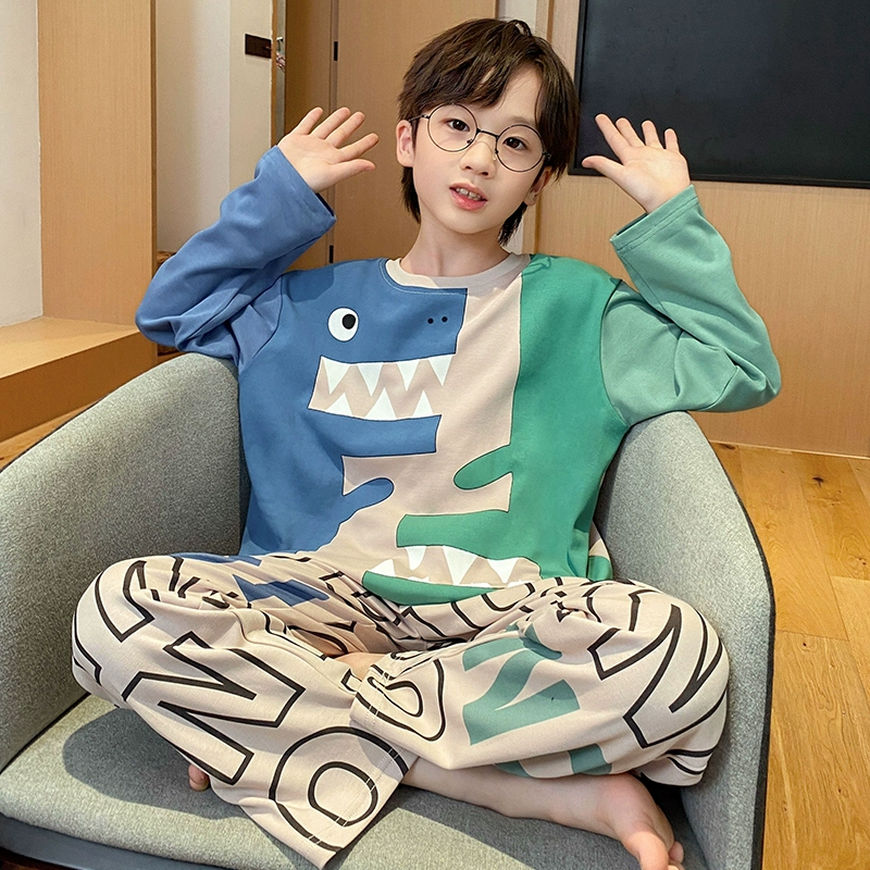 Autumn cotton long -sleeved boys, big children’s pajamas