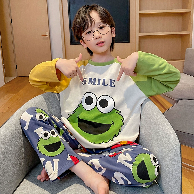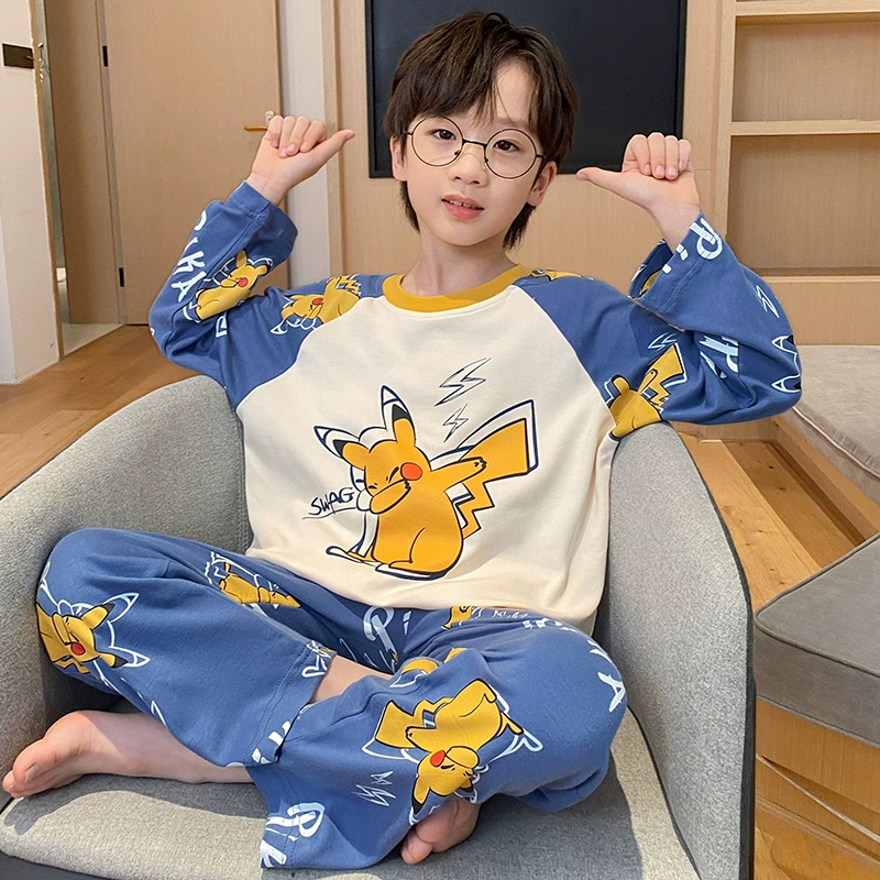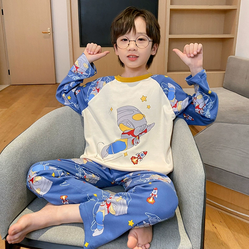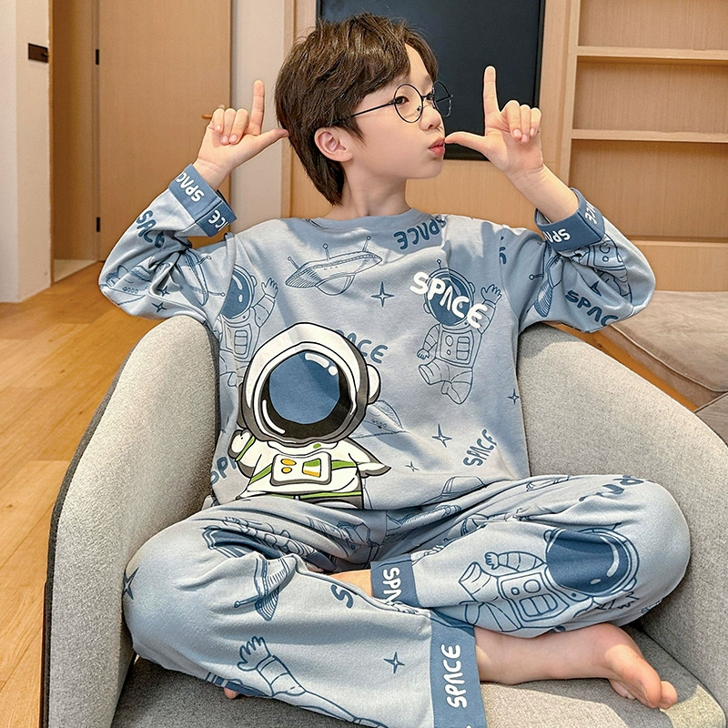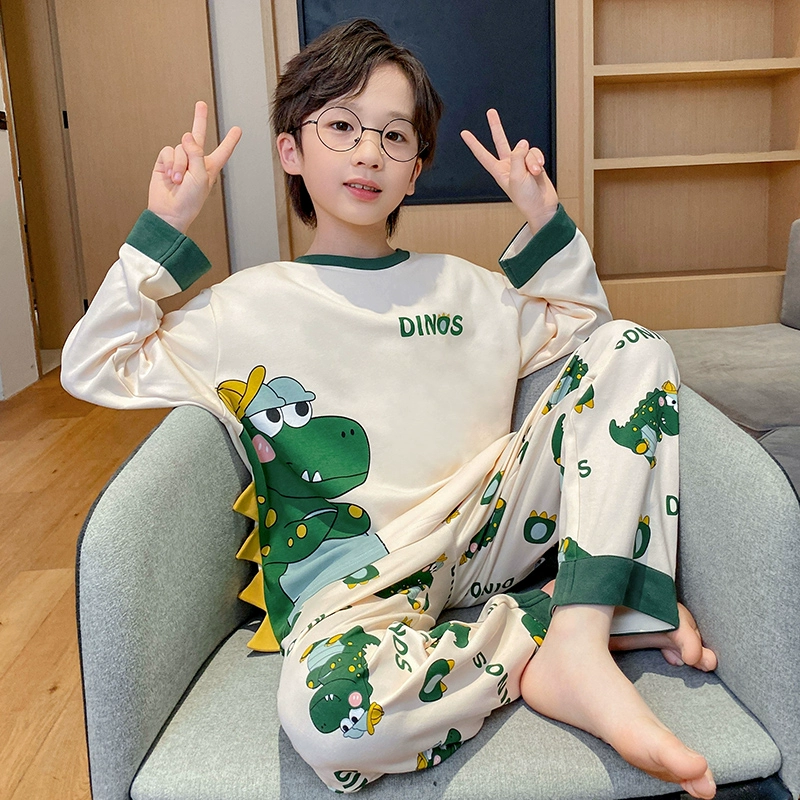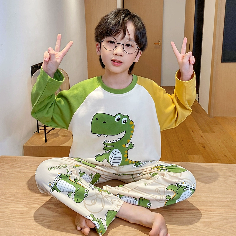 Autumn cotton long -sleeved boys, big children’s pajamas
