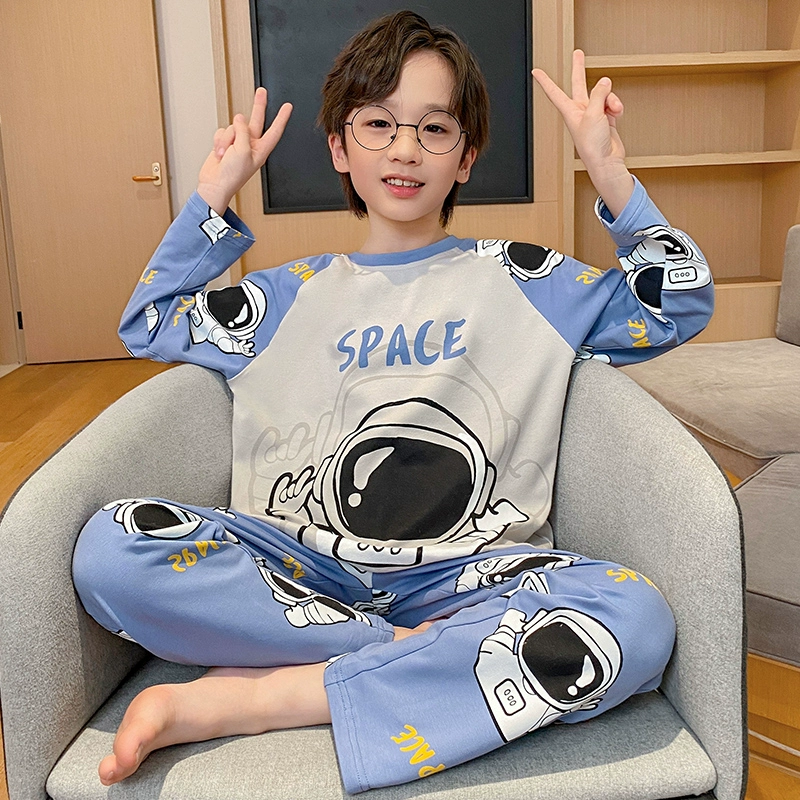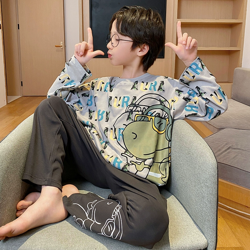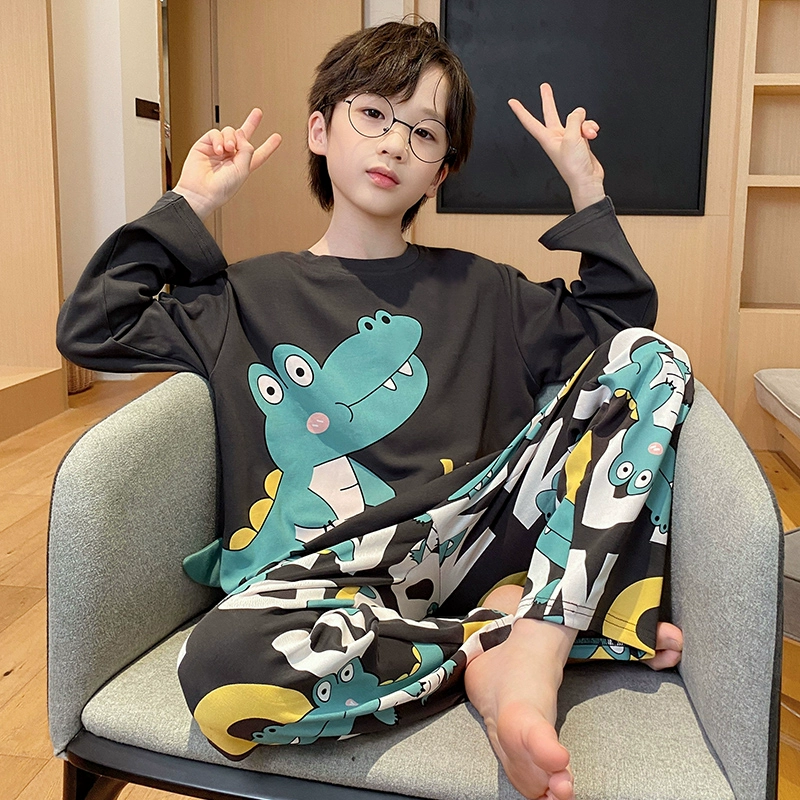 Autumn pure cotton long-sleeved boys' medium and large children's pajamas