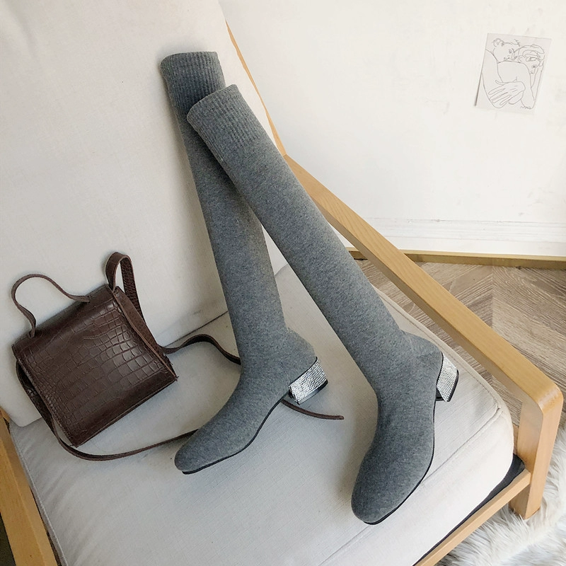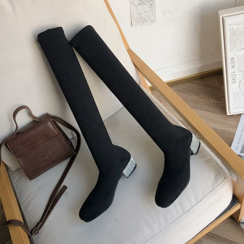 | nameOriginal | Autumn rhinestone thick heel over-the-knee boots, long socks and shoes |