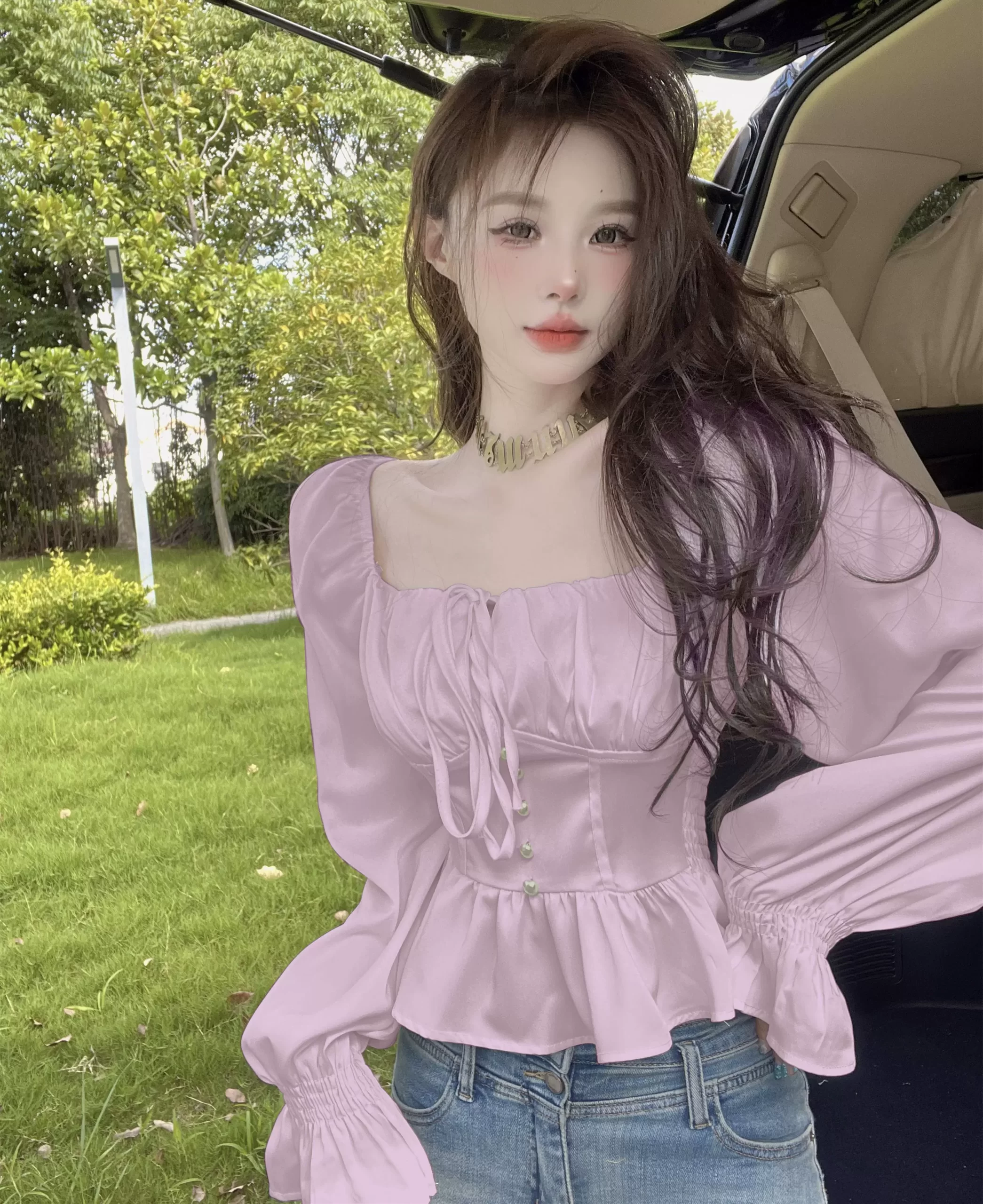 | nameOriginal | Autumn Ruffled French Square Neck Top Long Sleeve Shirt |