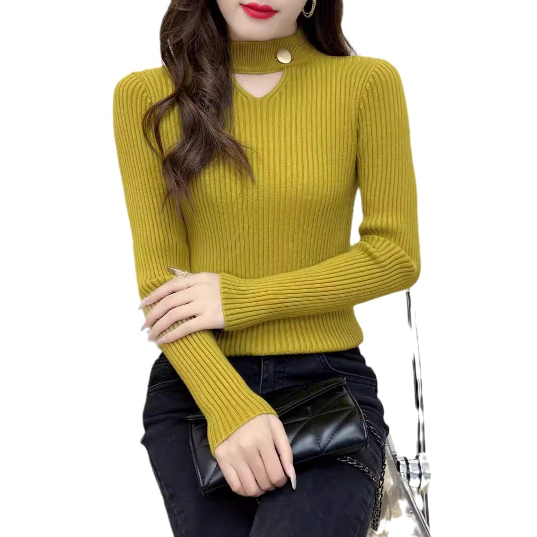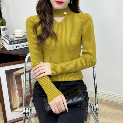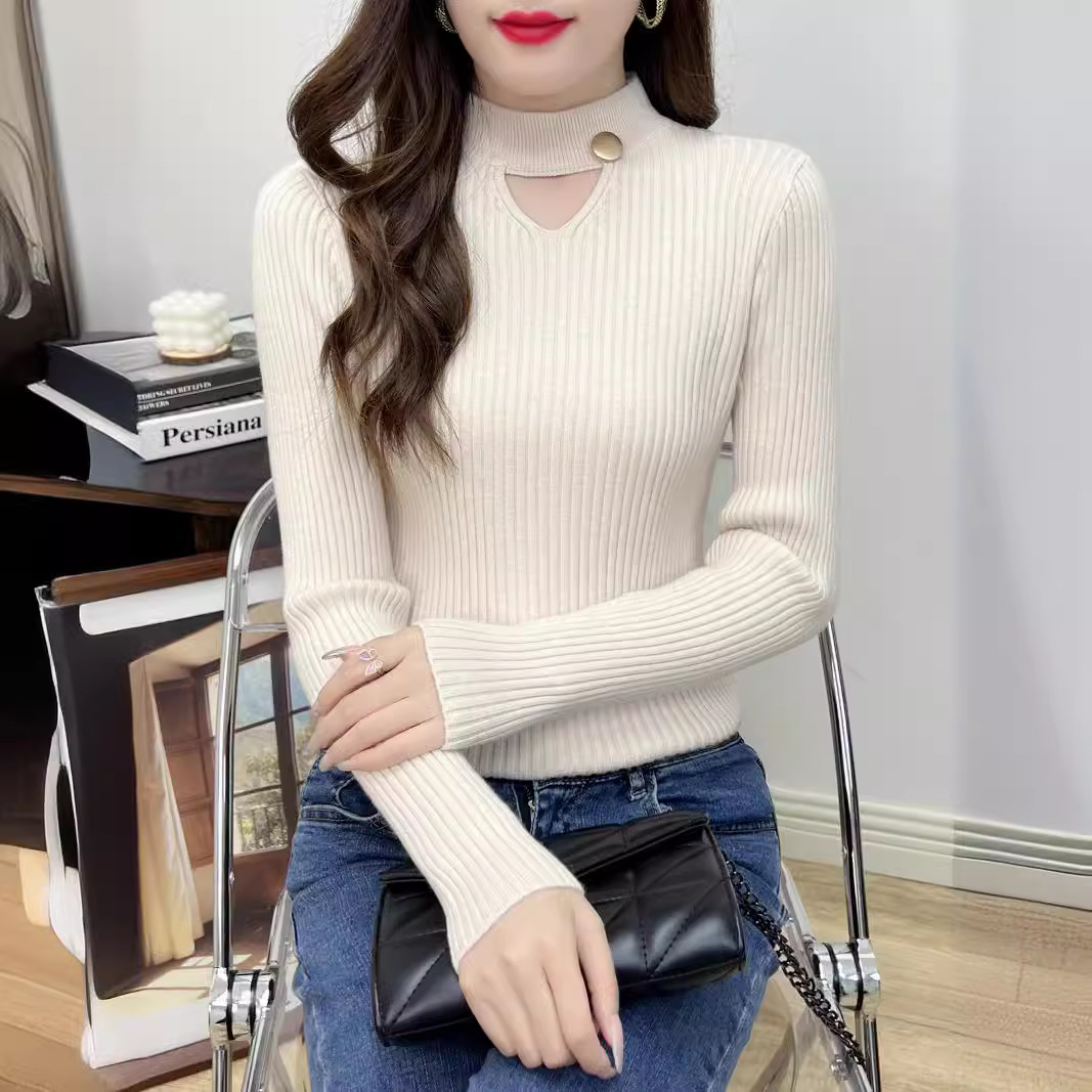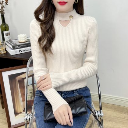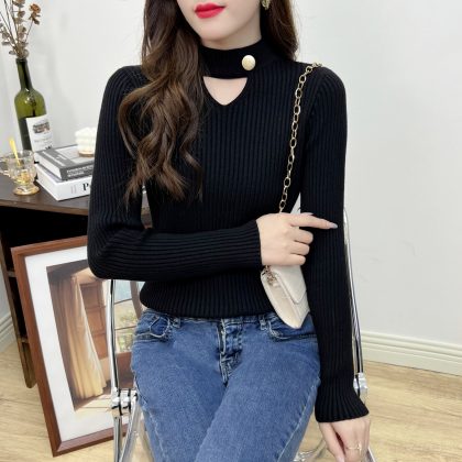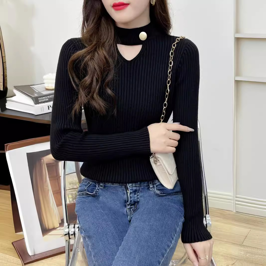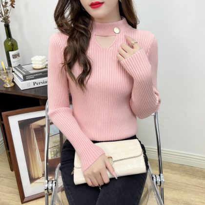 | nameOriginal | Autumn simple wind hollow round neck long sleeve sweater women's fashion solid color base shirt design versatile sweater pullover |