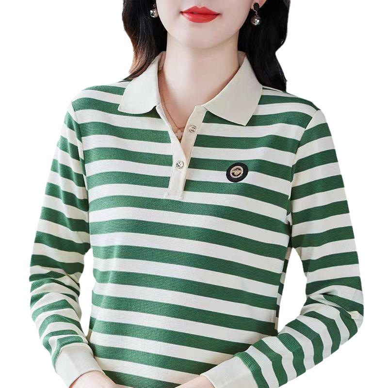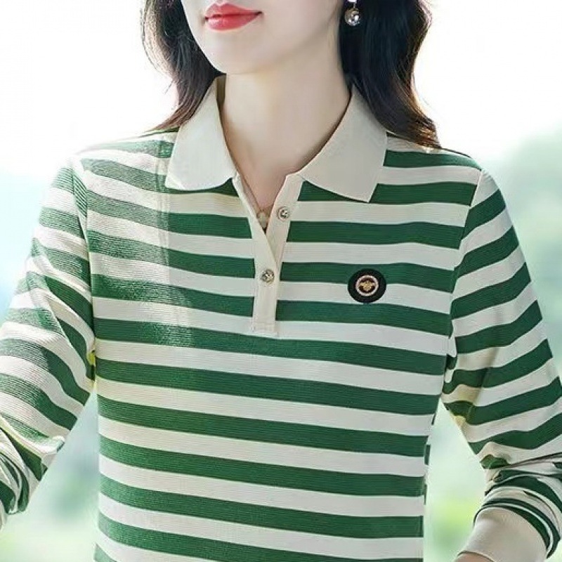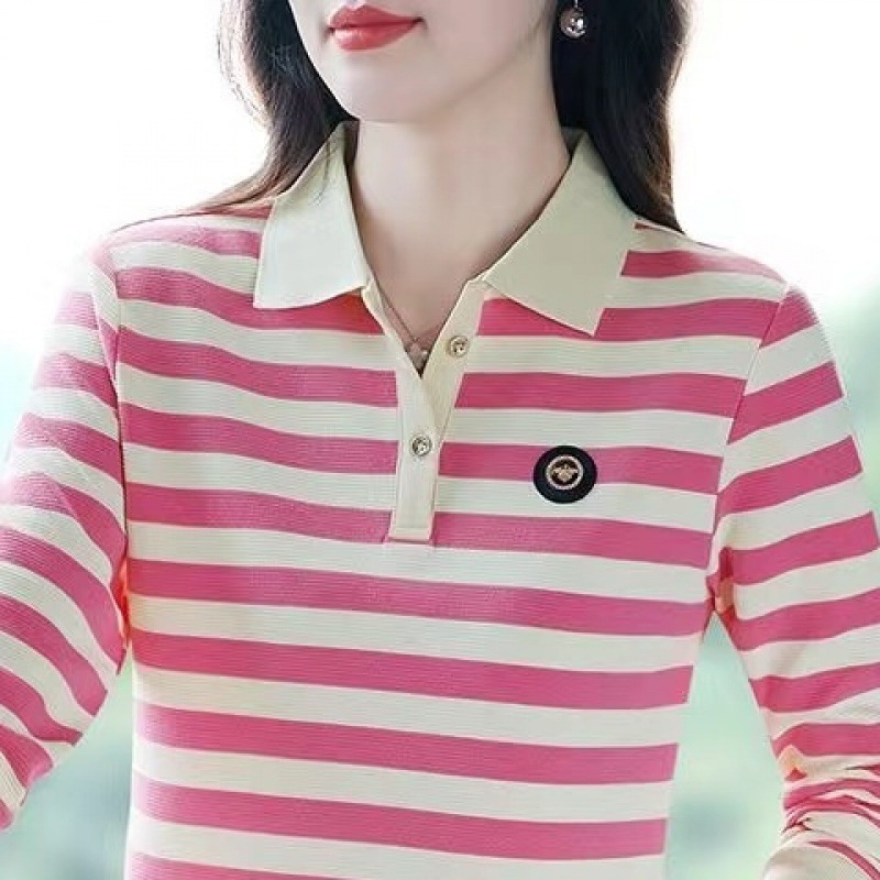Autumn Striped Long Sleeve Polo Collar Shirt Women's 2024 New Fashion Elegant Slim T-shirt All-match Mom Top